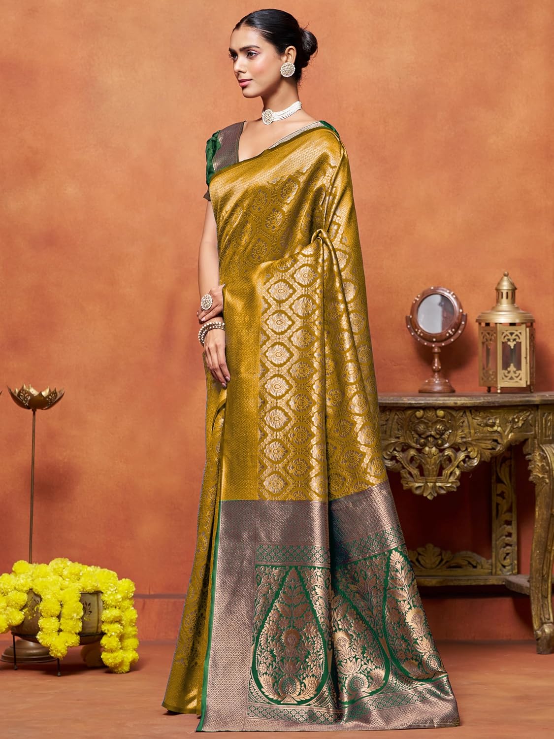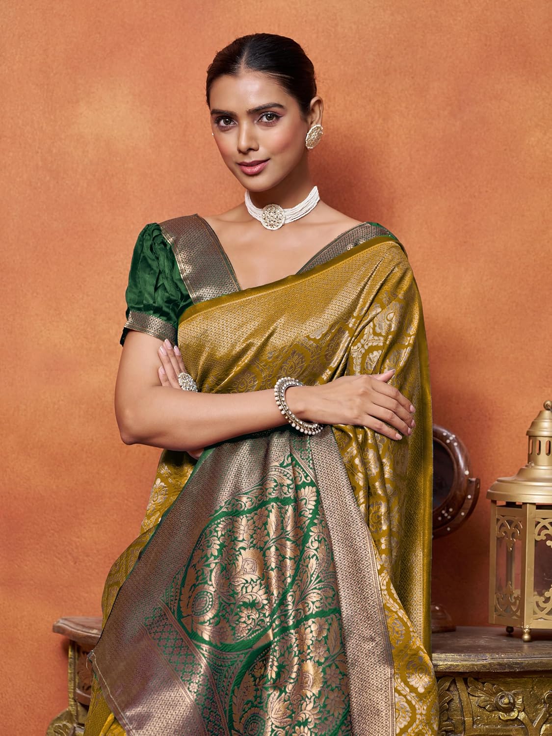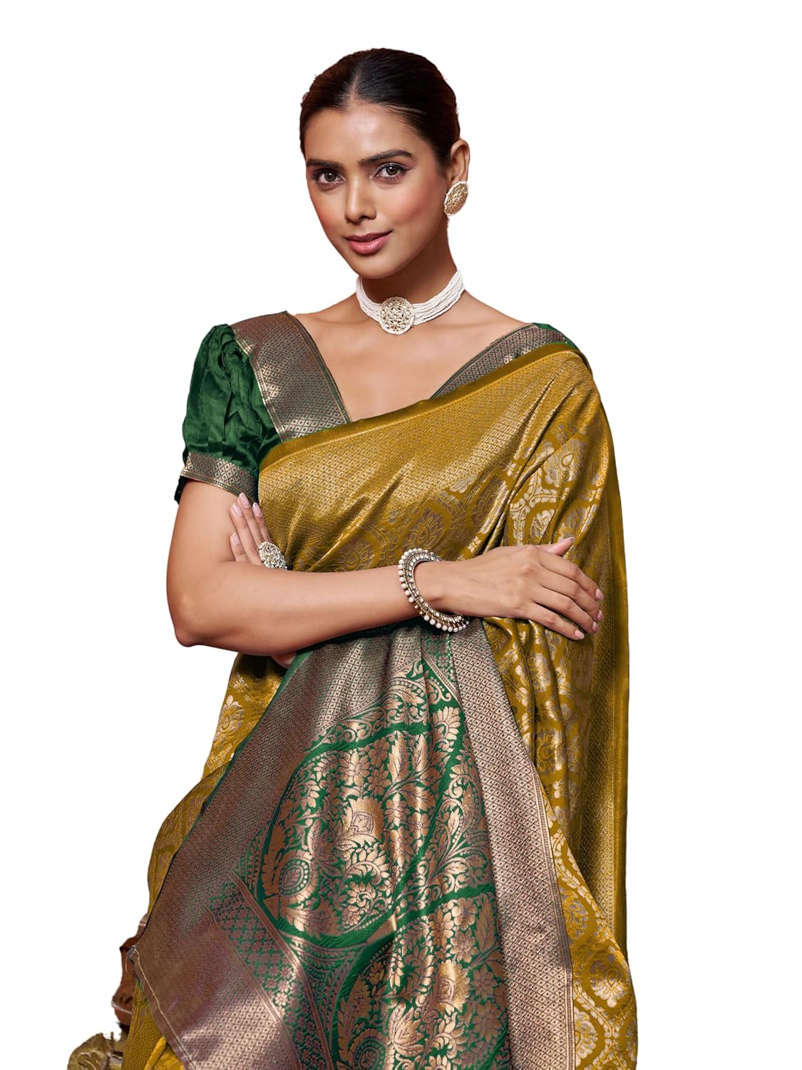 EthnicJunction Women’s Silk Blend Banarasi Saree With Blouse Piece