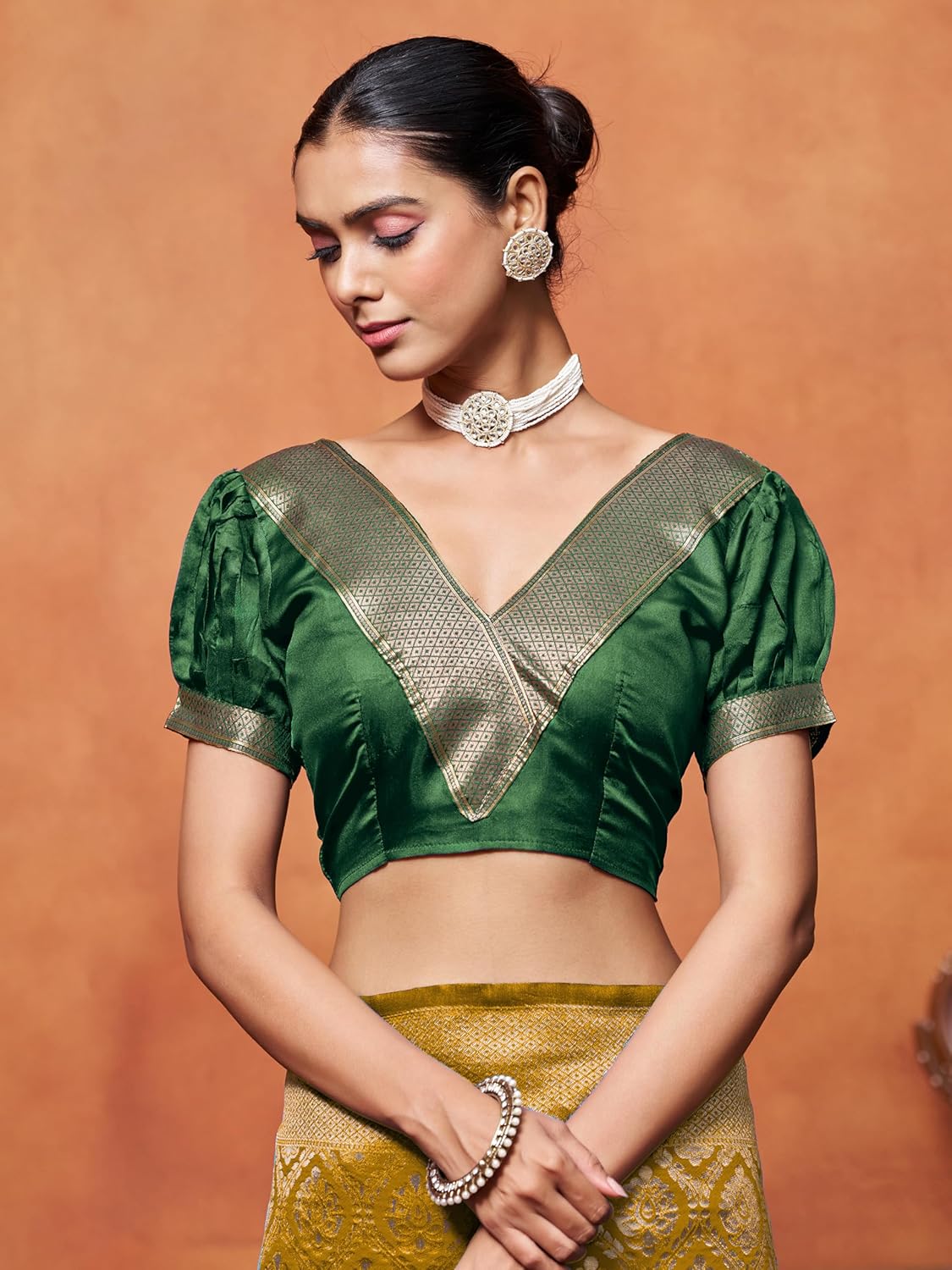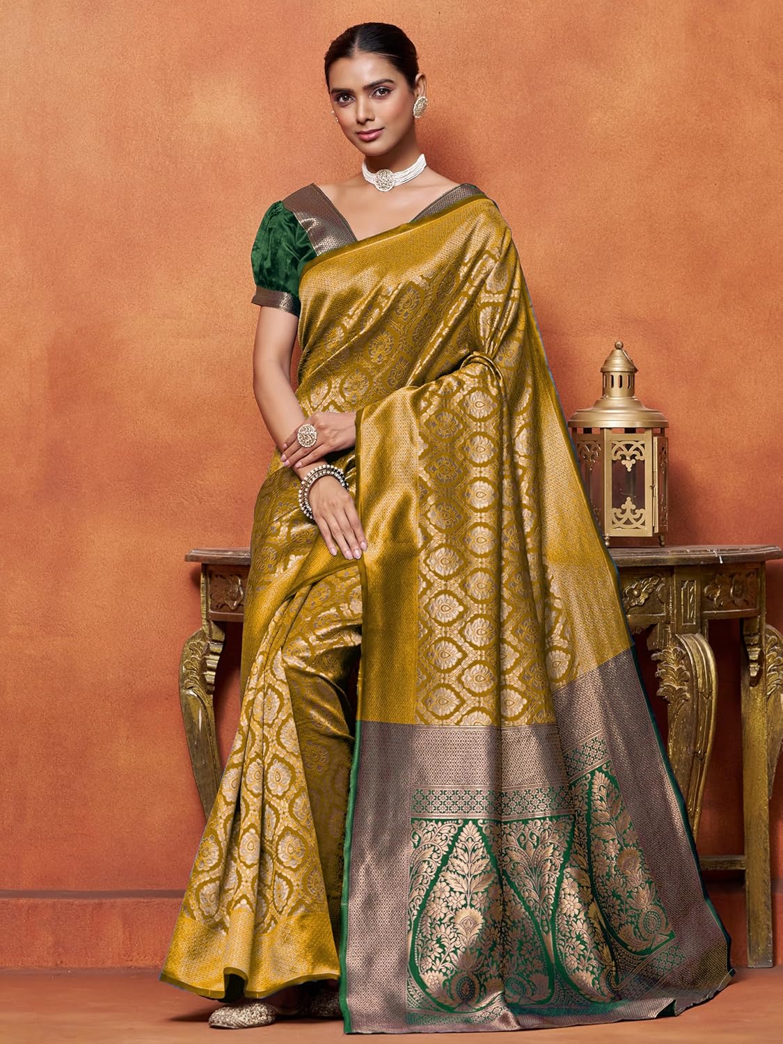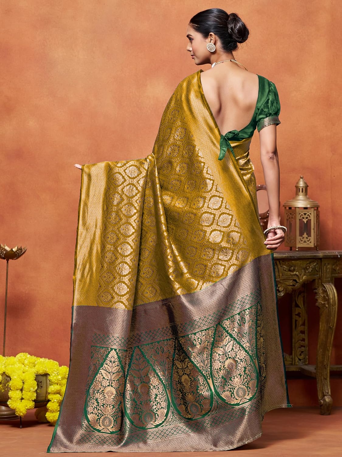 EthnicJunction Women’s Silk Blend Banarasi Saree With Blouse Piece