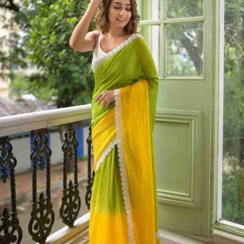DK Solid/Plain Bollywood Cotton Silk Saree