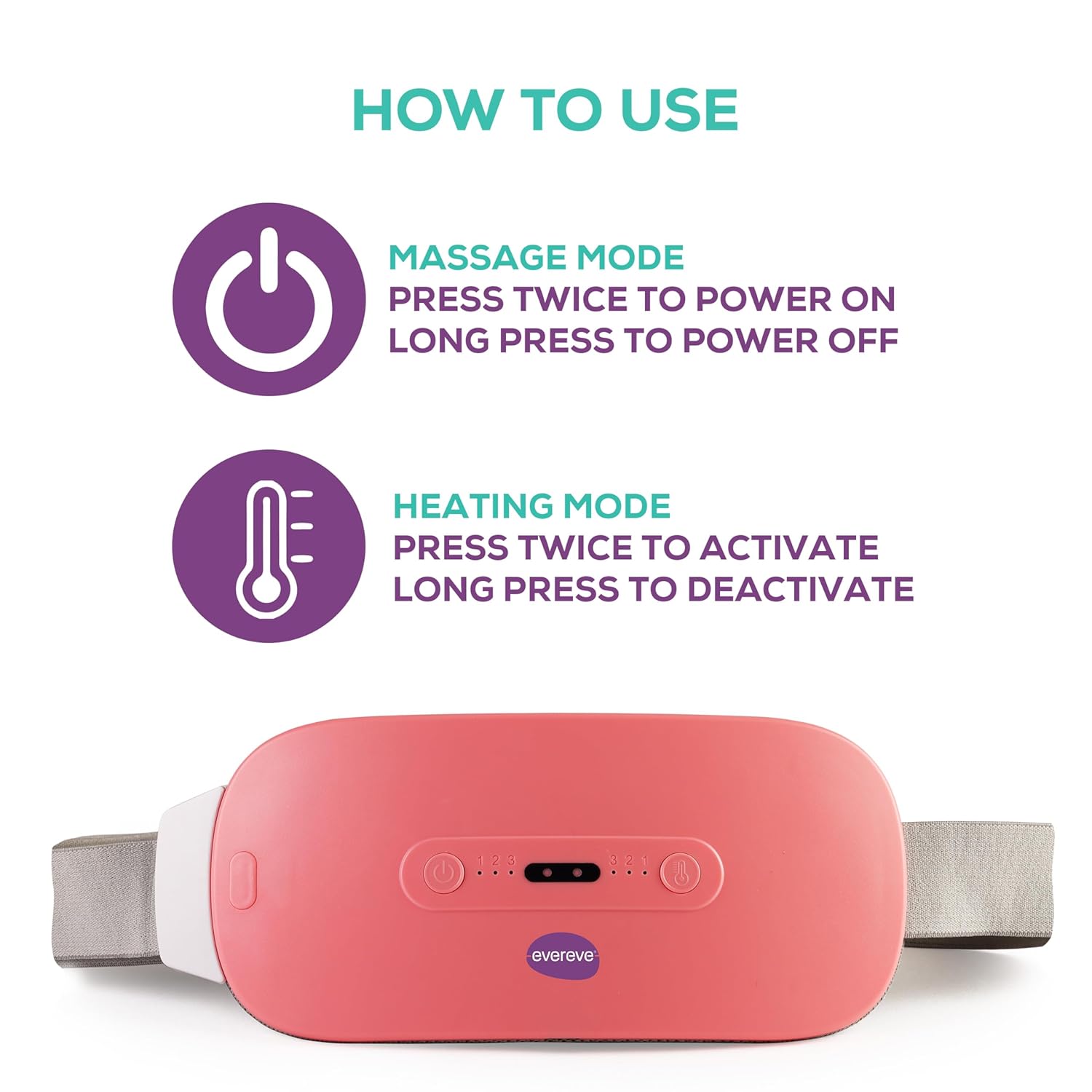 Evereve Electric Heating Pad and Menstrual Massager with Belt, 3 modes, 3 heating levels (45°,55° & 65°), long lasting battery life of upto 5 hours, USB powered, Portable, For Menstrual Pain Relief