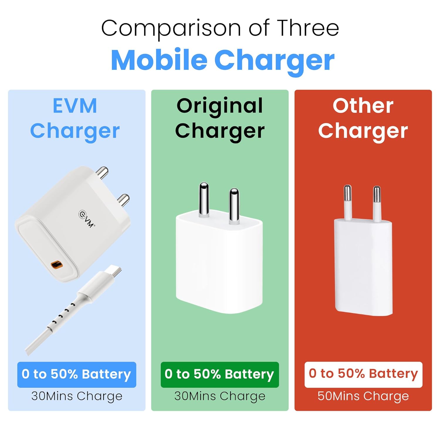 EVM 25W Fast Mobile Charger with Type-C Cable – Compact USB-C Power Adapter for Android, Samsung, Xiaomi, Vivo & Other Smartphones, Quick Charging Wall Charger, 1-Year Warranty (EVM-CH-013)