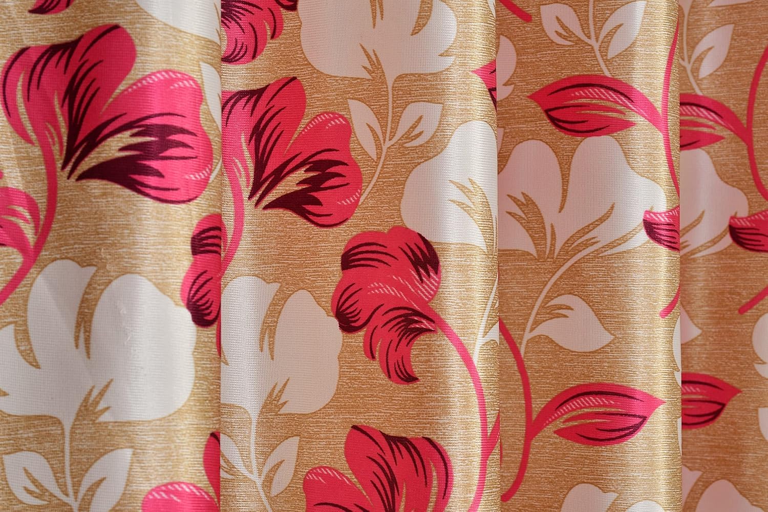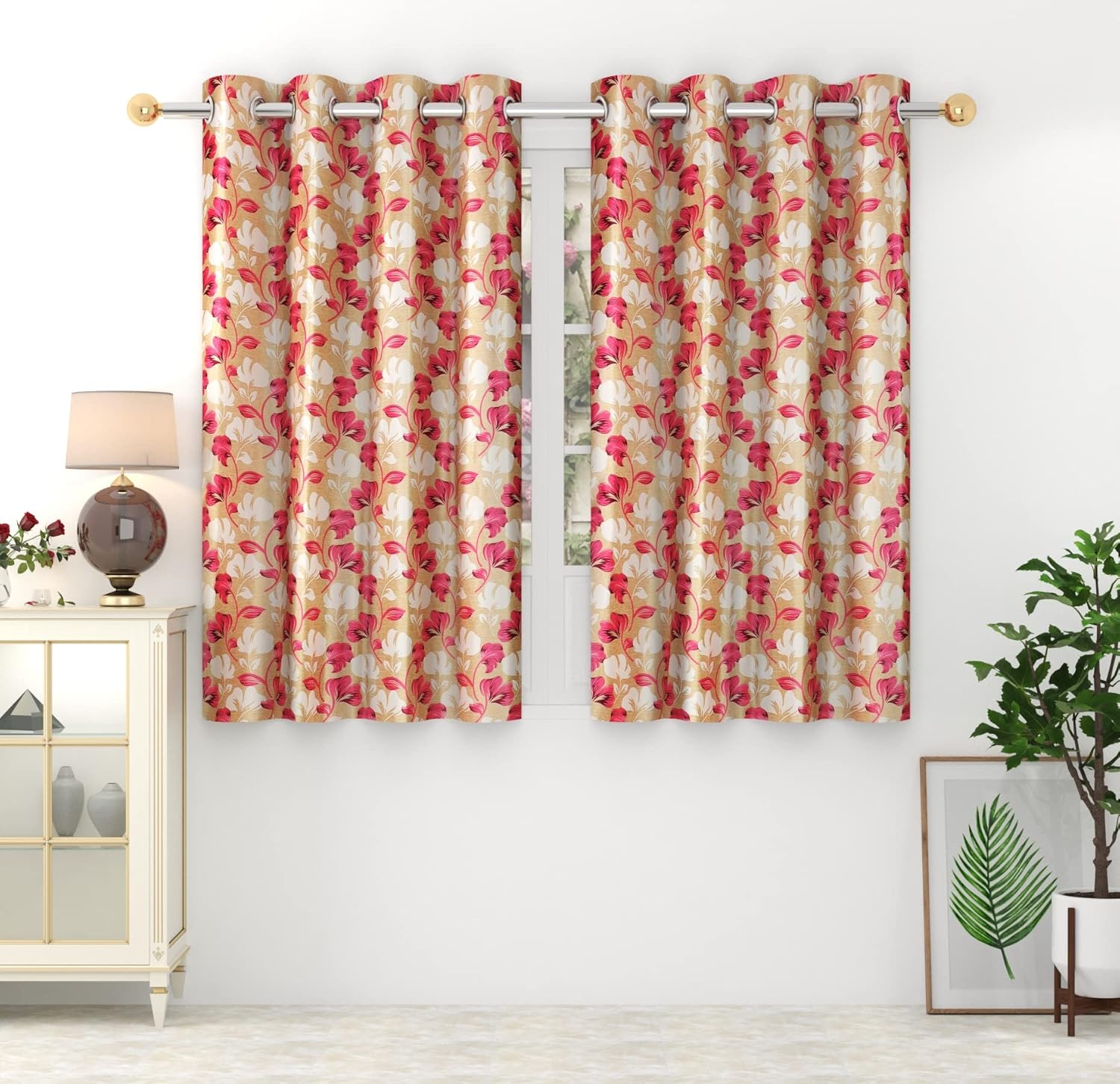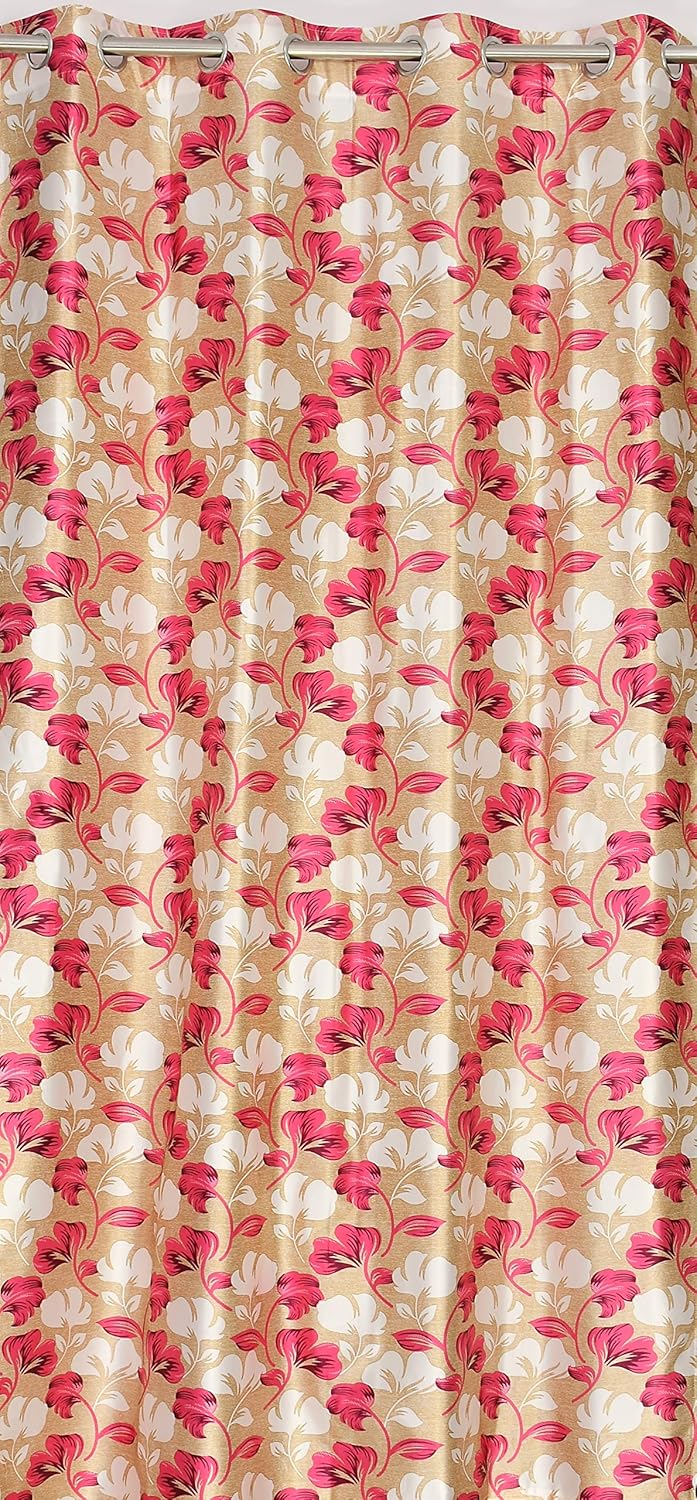 Exporthub 2 Pieces Fancy Design Pink Floral Leaf Polyester Eyelet Window Curtains – Length 5 Feet, (EHSPR724_54)