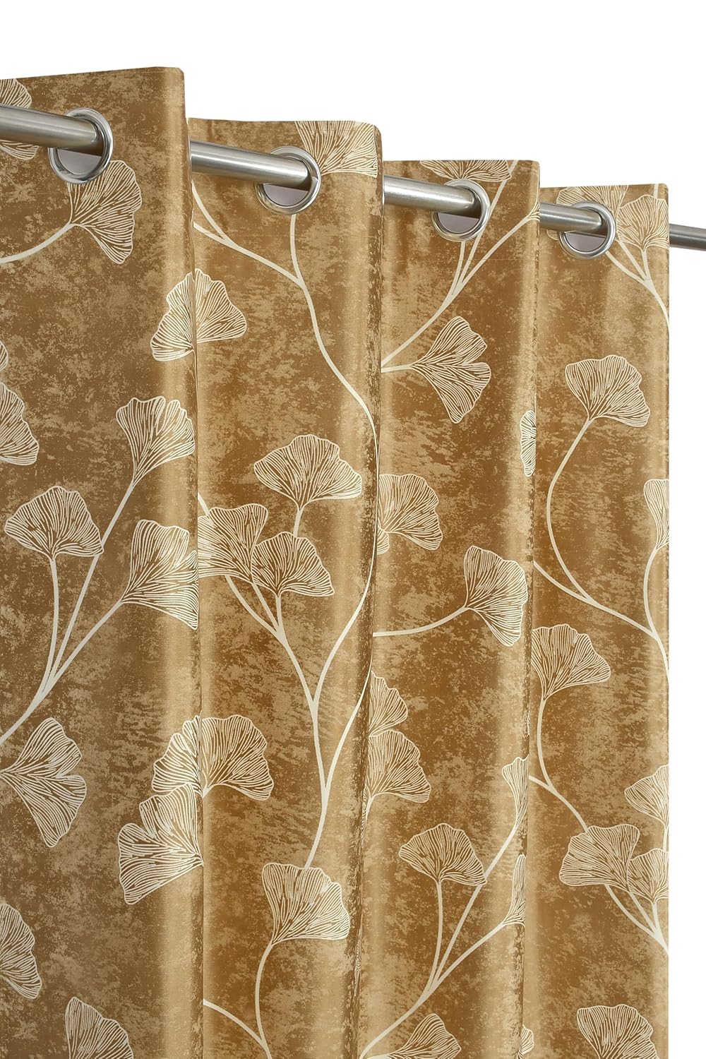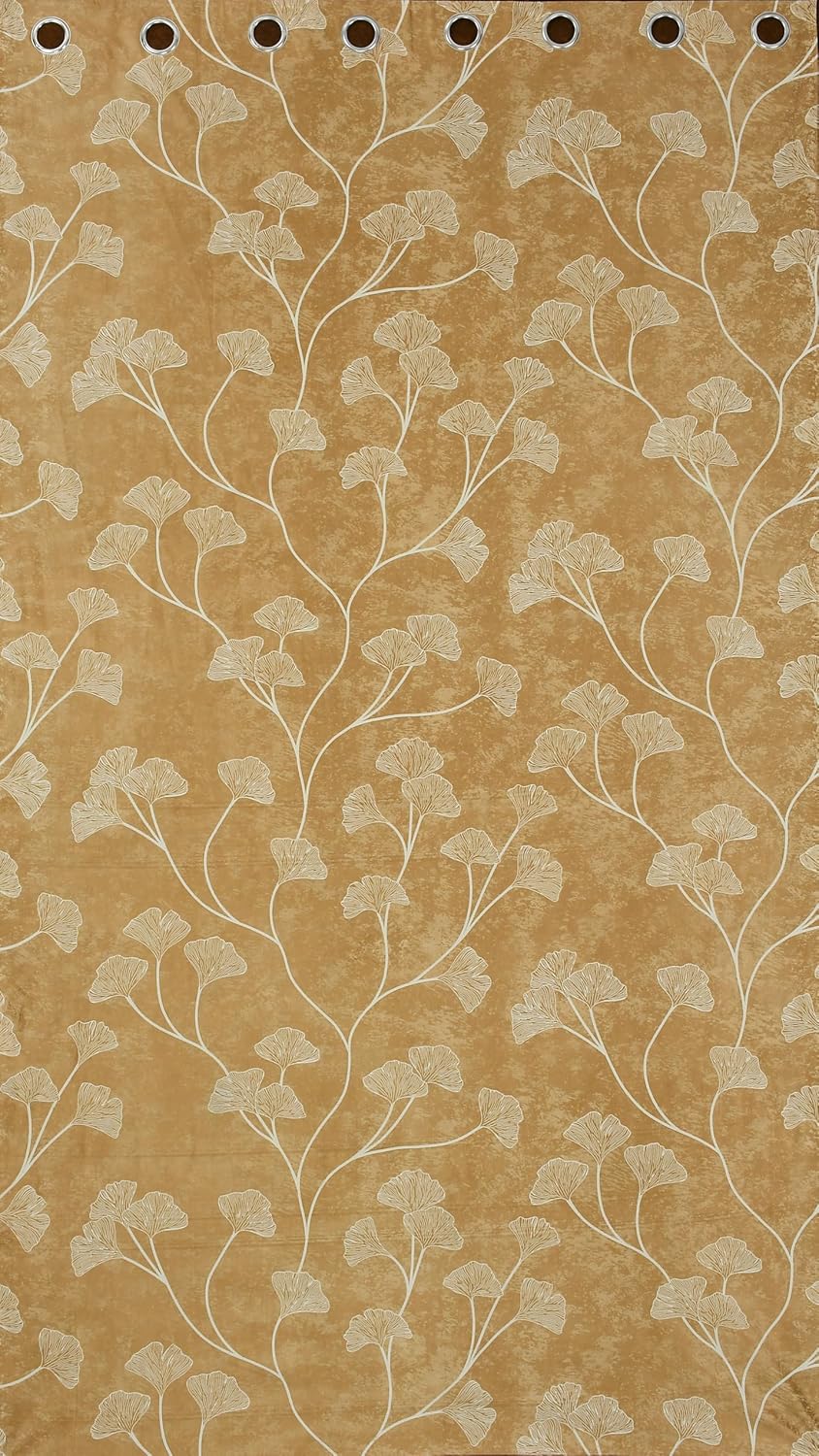 1 review for Exporthub Glossy Shine 3D Floral Digital Printed Golden Colour Window Curtains 5 feet Long Set of 2 Pc, for Living Room and Bedroom (EHSPR067_54)
