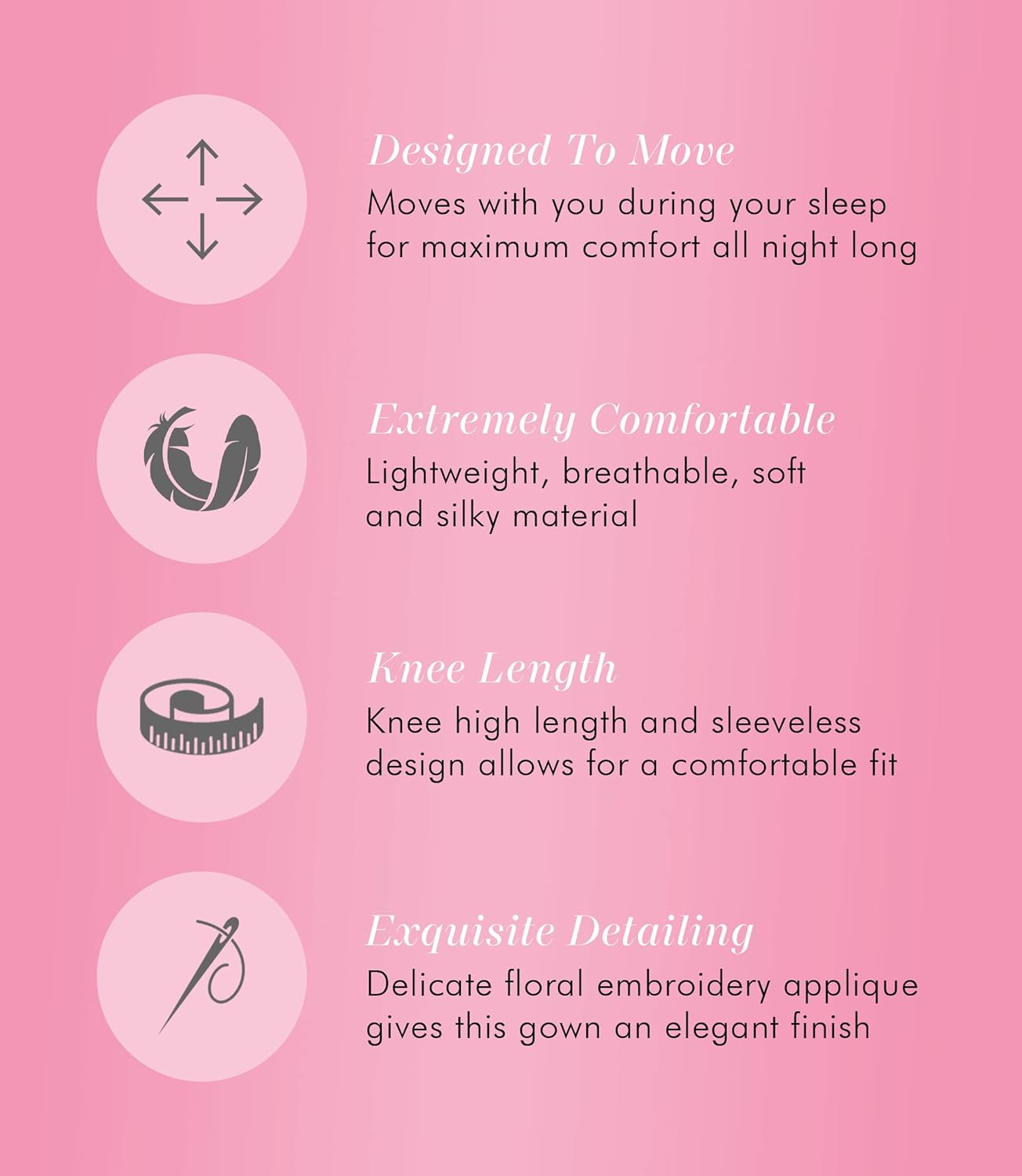 Extremely comfortable nightgown. It’s well made. I bought one in black also.