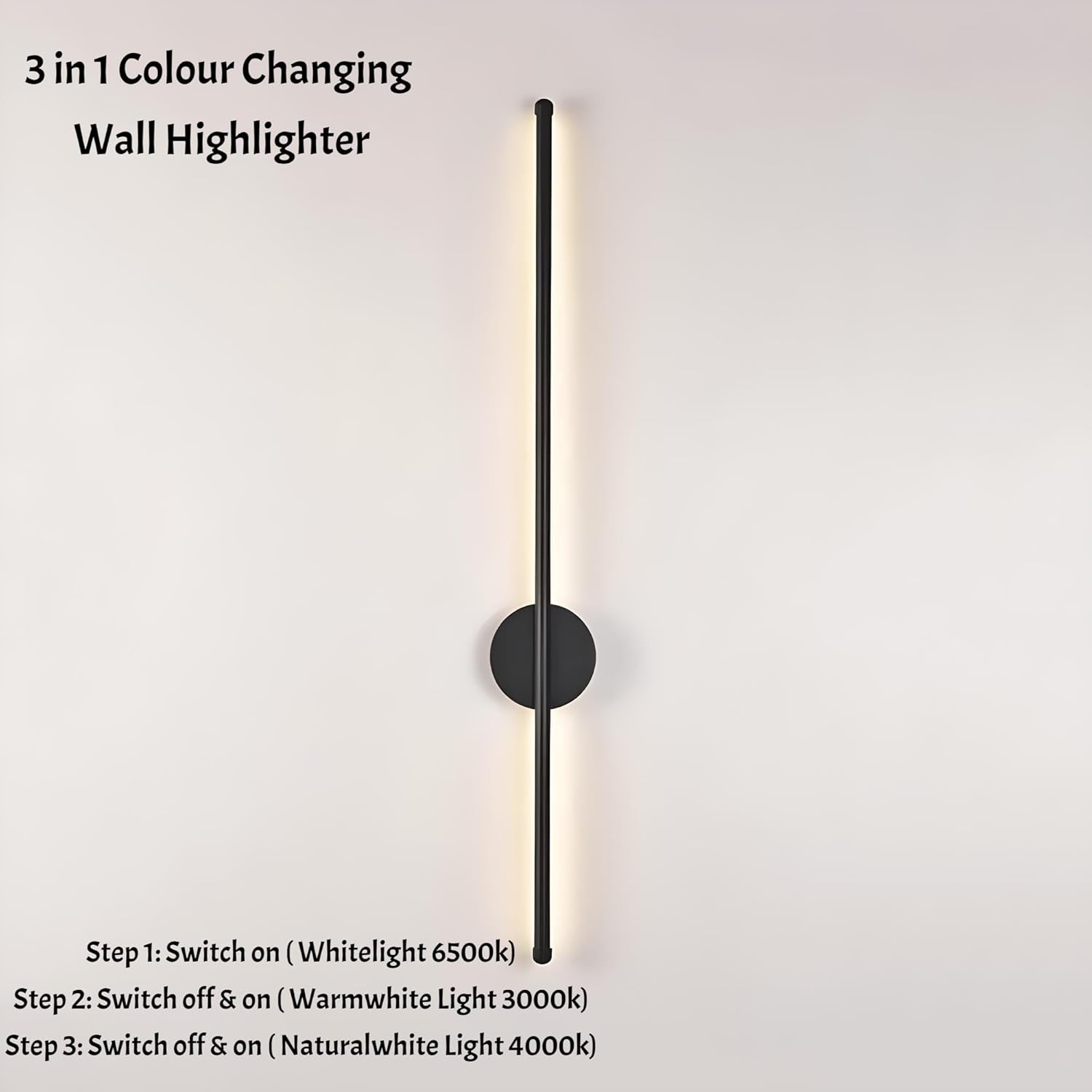 FILLISKA Led Wall Highlighter Light, 3-in-1 Colour Changing, Luxurious Wall Decor (12 Watt Sleek Black-098)