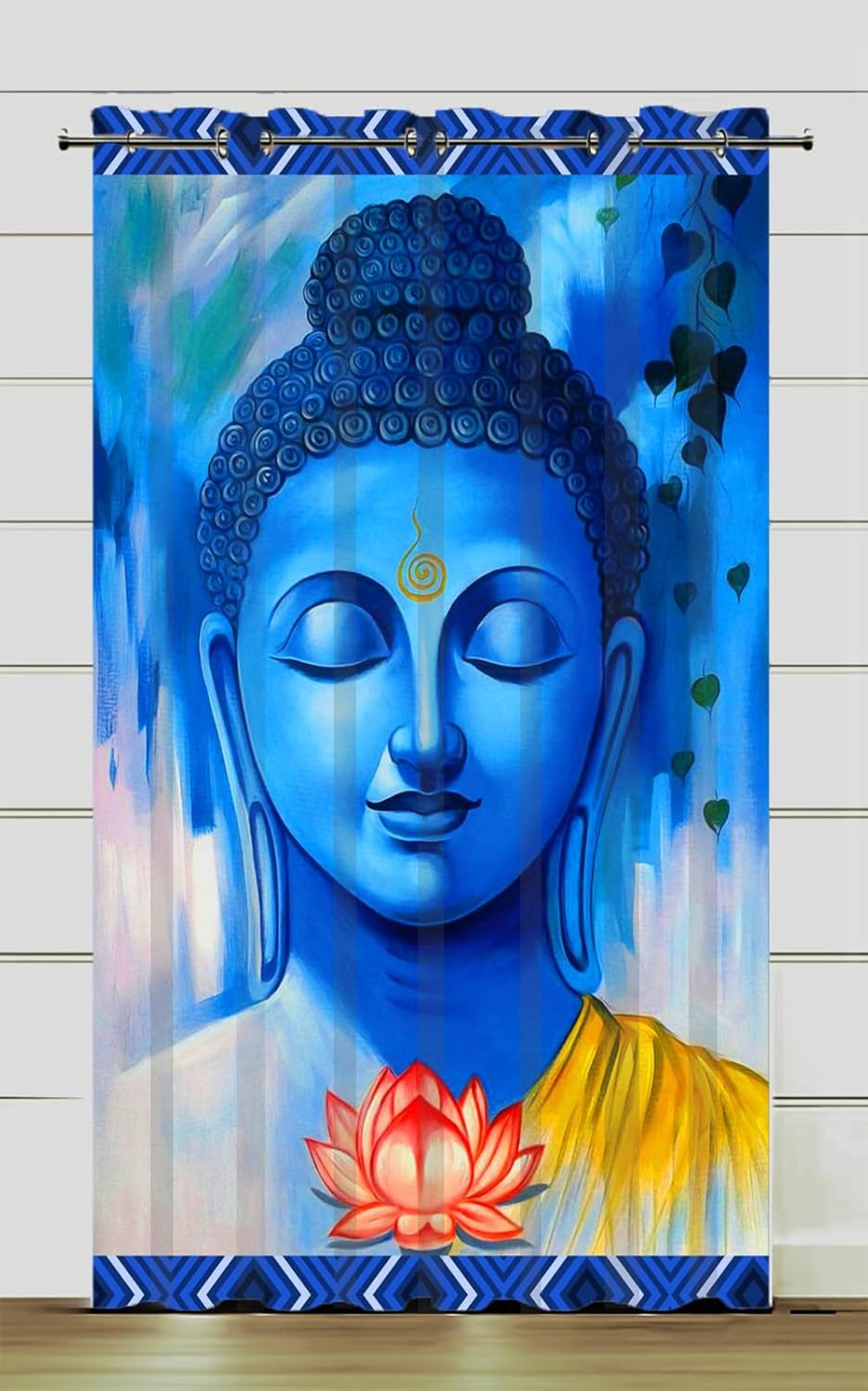 8 reviews for FRESH FROM LOOM Latest Modern Parde For Pooja Room|Premium Window Semi Sheer Curtain 5 Feet Long|Polyester Roatry Printed God Parda|Mandir Curtains|Home Screens|Eyelet Ring (1Pc Buddha),Multicolor)