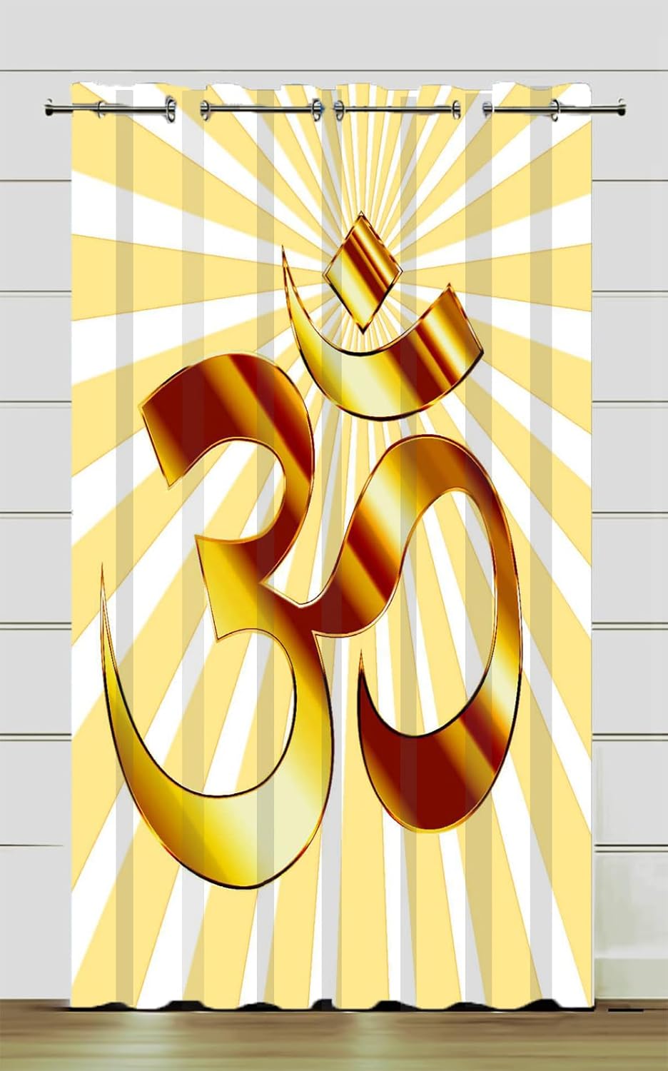 FRESH FROM LOOM Mandir Semi Sheer Curtain|5 Feet Long Window Curtain|Premium Polyester Roatry Printed God Parda|Latest Modern Parde For Pooja Room|Home Screens|Eyelet Ring (1Pc Om Aum),Multicolor