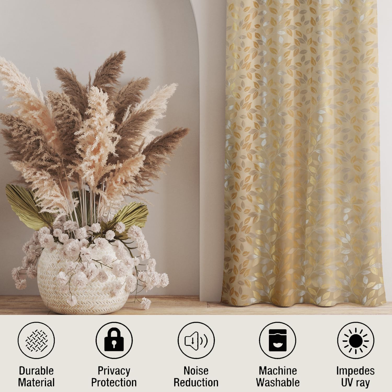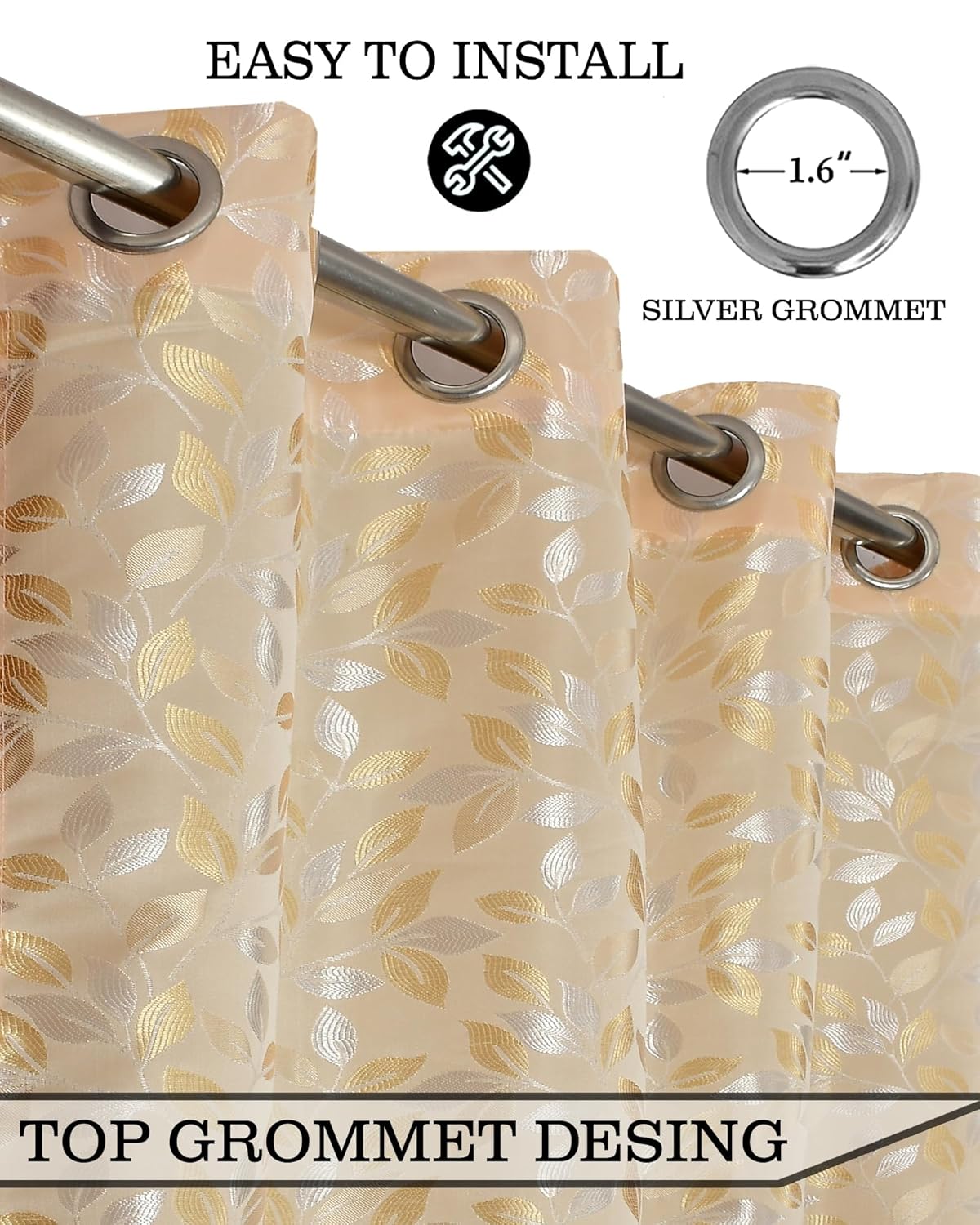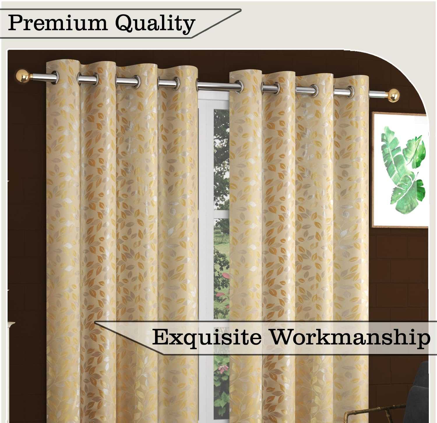 Elegant and classy. Though bigger for a 9 ft door. Dimensions could be different. But looks beautiful. Cloth quality is also good