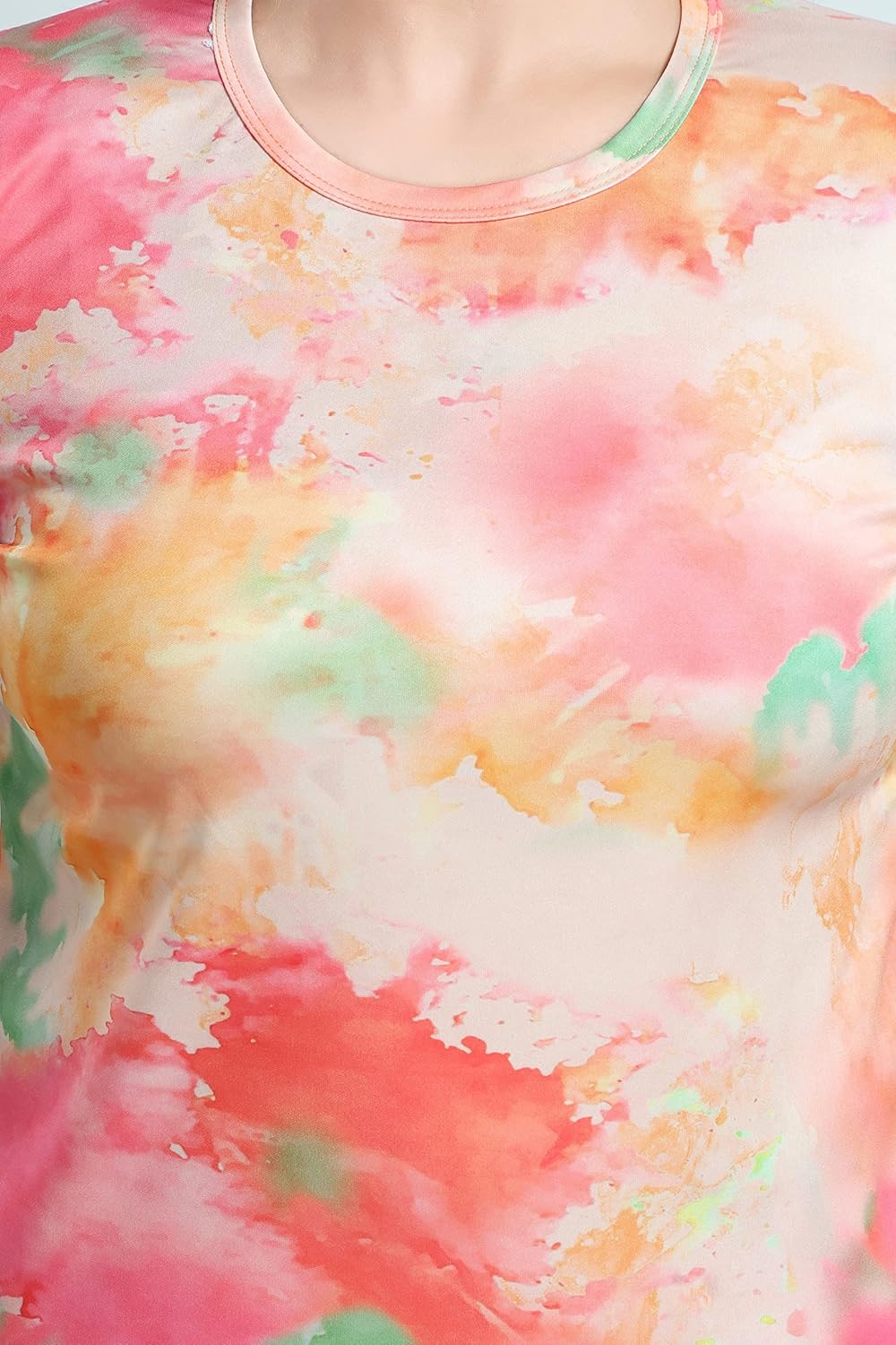 The material is some kind of synthetic fabric, not cotton lycra at all. Might be good for light winter or autumn but definitely not for Indian summer.Also it’s not really tie and dye, just a print of tie dye pattern.