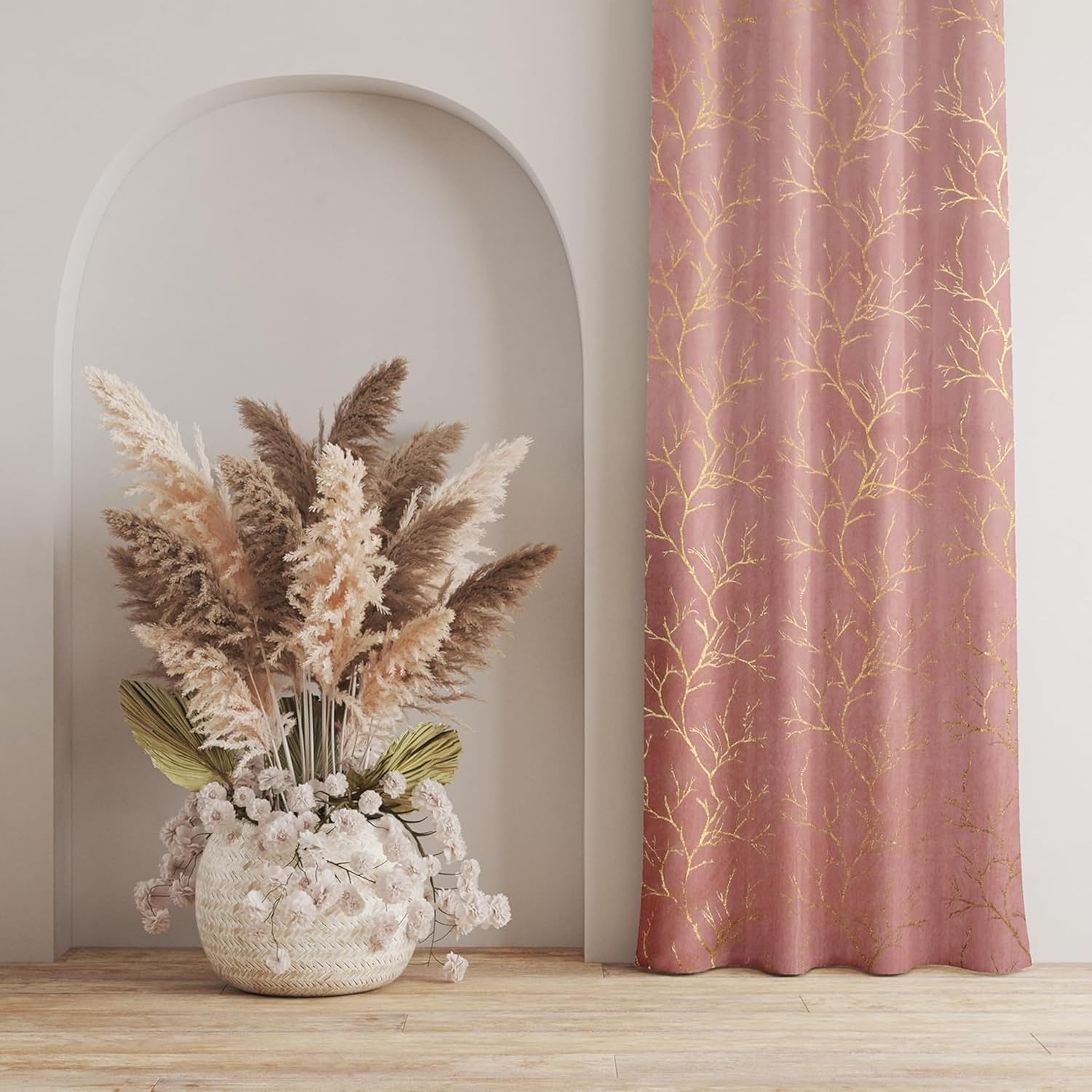 8 reviews for Galaxy Home Decor Premium Foil Leaf Print Velvet Fabric Curtains for Window 5 Feet, Pack of 1, Baby Pink