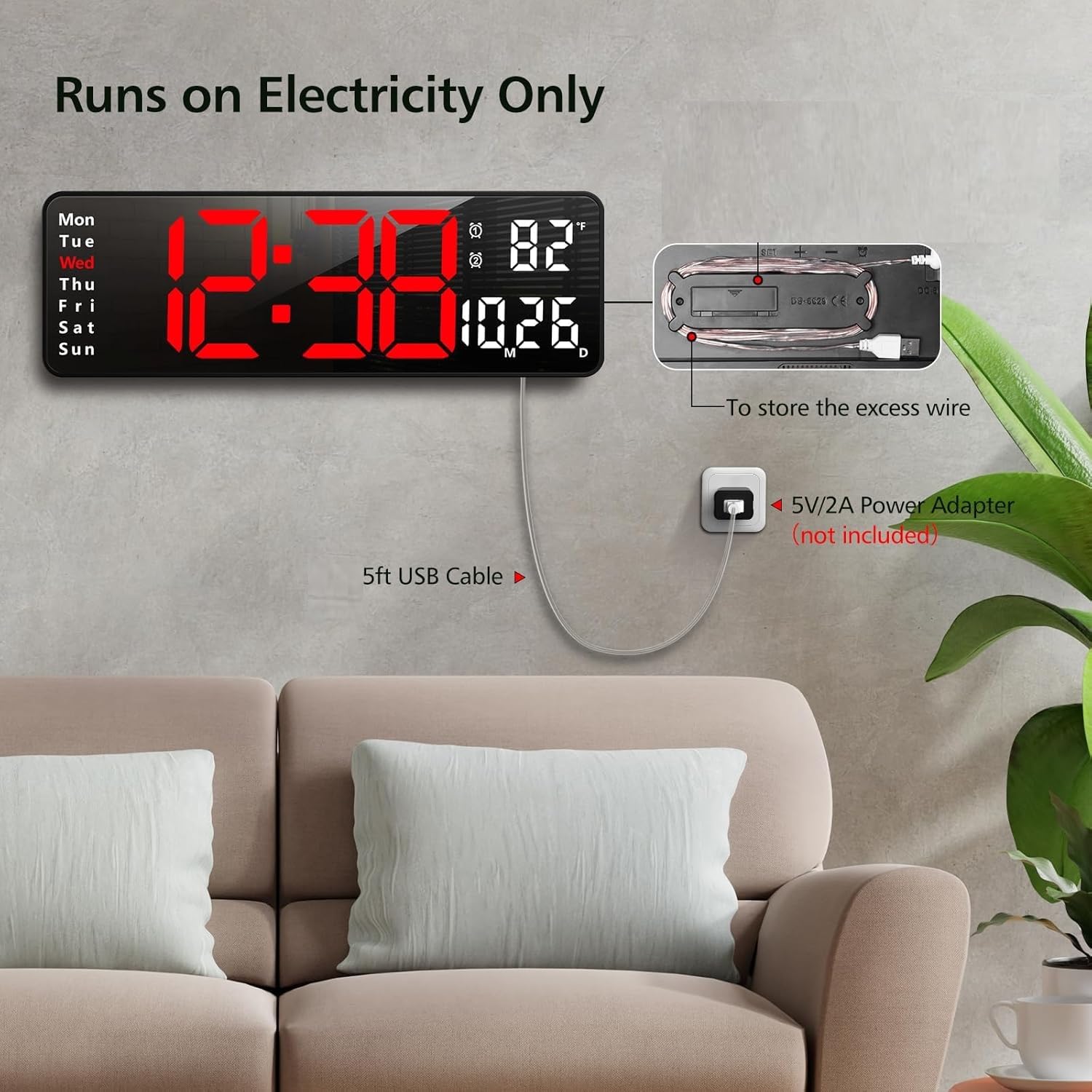 2 Place Ways & Widely Used: The large LED display wall clock can be hung on the wall or placed on the desktop. This wall clocks is suitable for living room, kitchen, garage, farmhouse, office, warehouse, classroom, gym, shop, nursery