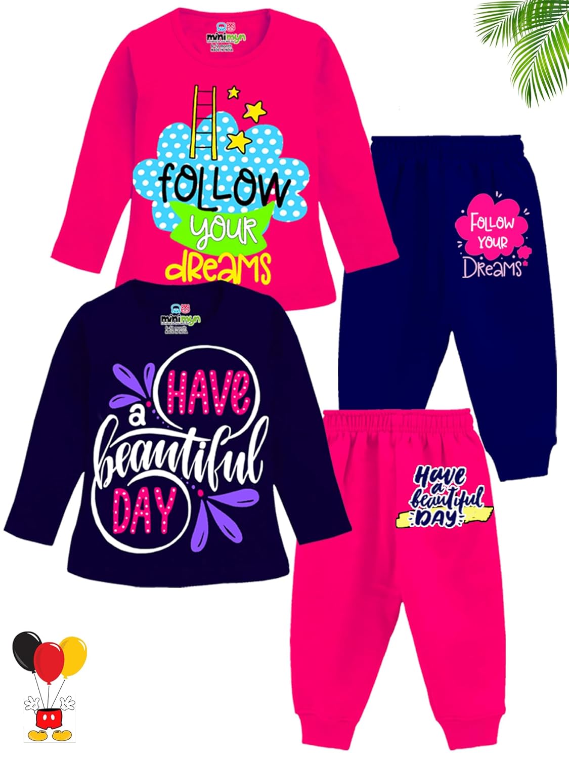 Dress your baby girl in comfort and style with Girls clothing set that includes Regular Fit Full Sleeves Winter Wear T-Shirts & Pajamas Set. This girls clothing set includes 2 T-shirts and 2 pajamas. The regular fit ensures a comfortable, regular fit, while the full sleeves provide added warmth. Available in a variety of sizes, these sets for girls are perfect for everyday wear, playtime, or bedtime.