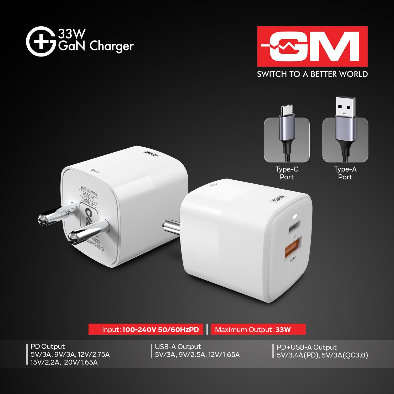 I’ve been using the GM G+ 33W Fast Charging Adapter for a few weeks now, and I’m really impressed with its performance. The GaN technology makes it compact and efficient — much smaller than traditional chargers, yet it packs a powerful punch.The dual-port design (Type-A + Type-C) is super convenient. I can charge my iPhone and smartwatch together, or my Android phone and earbuds at the same time, without any drop in speed. The 33W output ensures fast charging for phones, tablets, and even smaller gadgets like wearables.Another thing I appreciate is its travel-friendly build. It’s lightweight, sturdy, and doesn’t heat up even after long use. The sleek black finish looks premium, and it easily fits into any bag without taking up space.Whether you’re an Apple user or an Android user, this adapter works seamlessly. For me, it’s become my go-to travel charger — reliable, compact, and powerful. Definitely worth the investment!Pros:GaN technology = smaller, faster, cooler chargingDual-port for simultaneous chargingCompatible with Apple & Android devicesCompact and travel-friendly