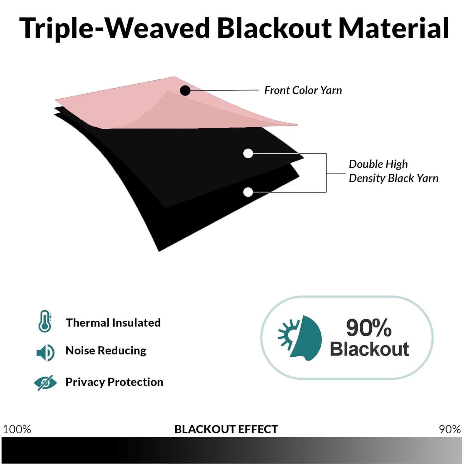 Light Blocking – The triple-weave light-blocking fabric balances room temperature by blocking heat in summer and cold in winter. These bedroom curtains block out 100% sunlight. Get you a good night sleep, afternoon nap and weekend lie-ins.