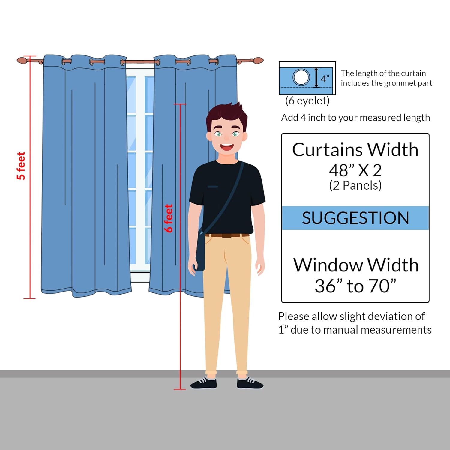 Package Content – 2 curtains per package. Each panel measures 48 Inch wide by 60 inch long with 6 steel metal grommets (1.6 inch inner diameter) on top, easy to install and slide.