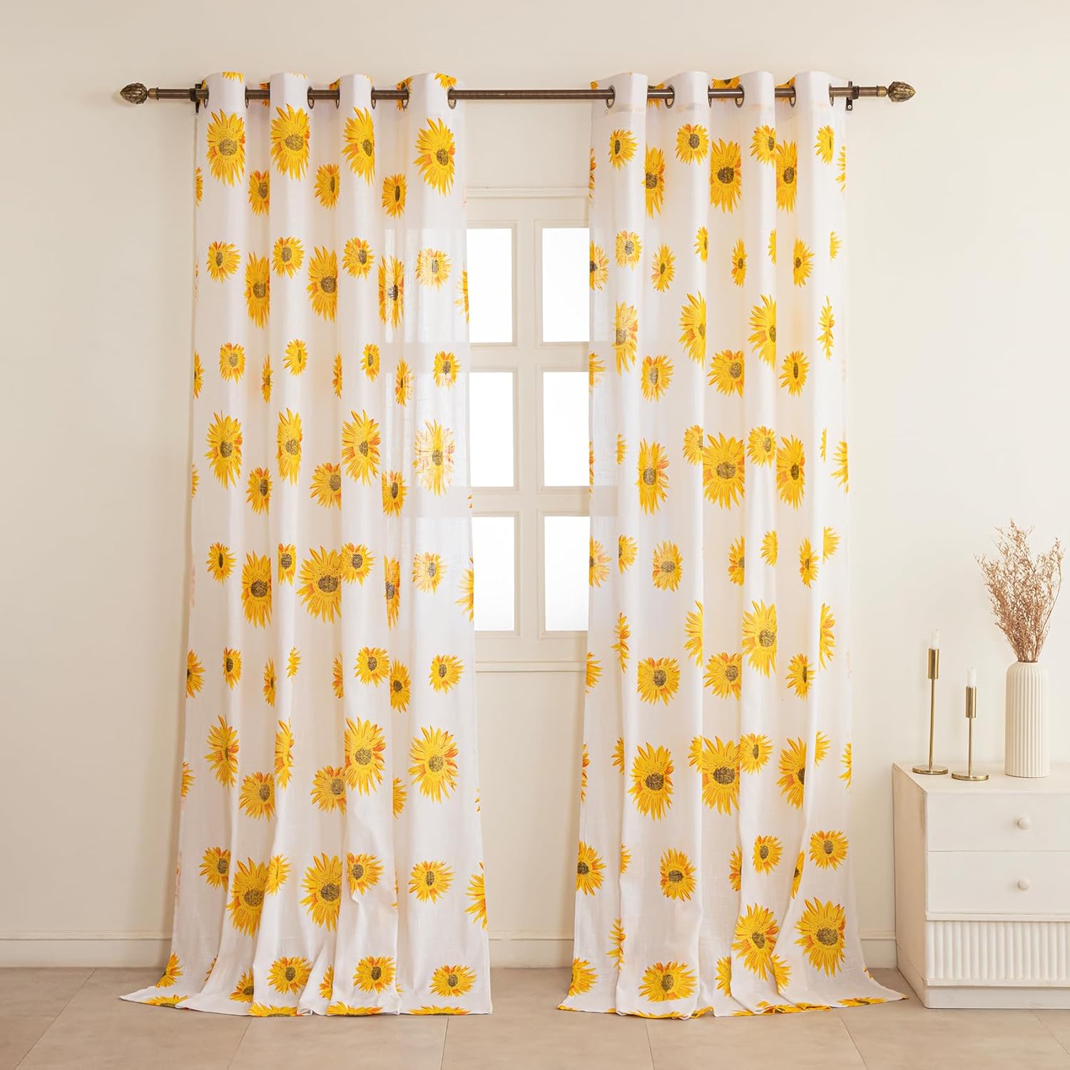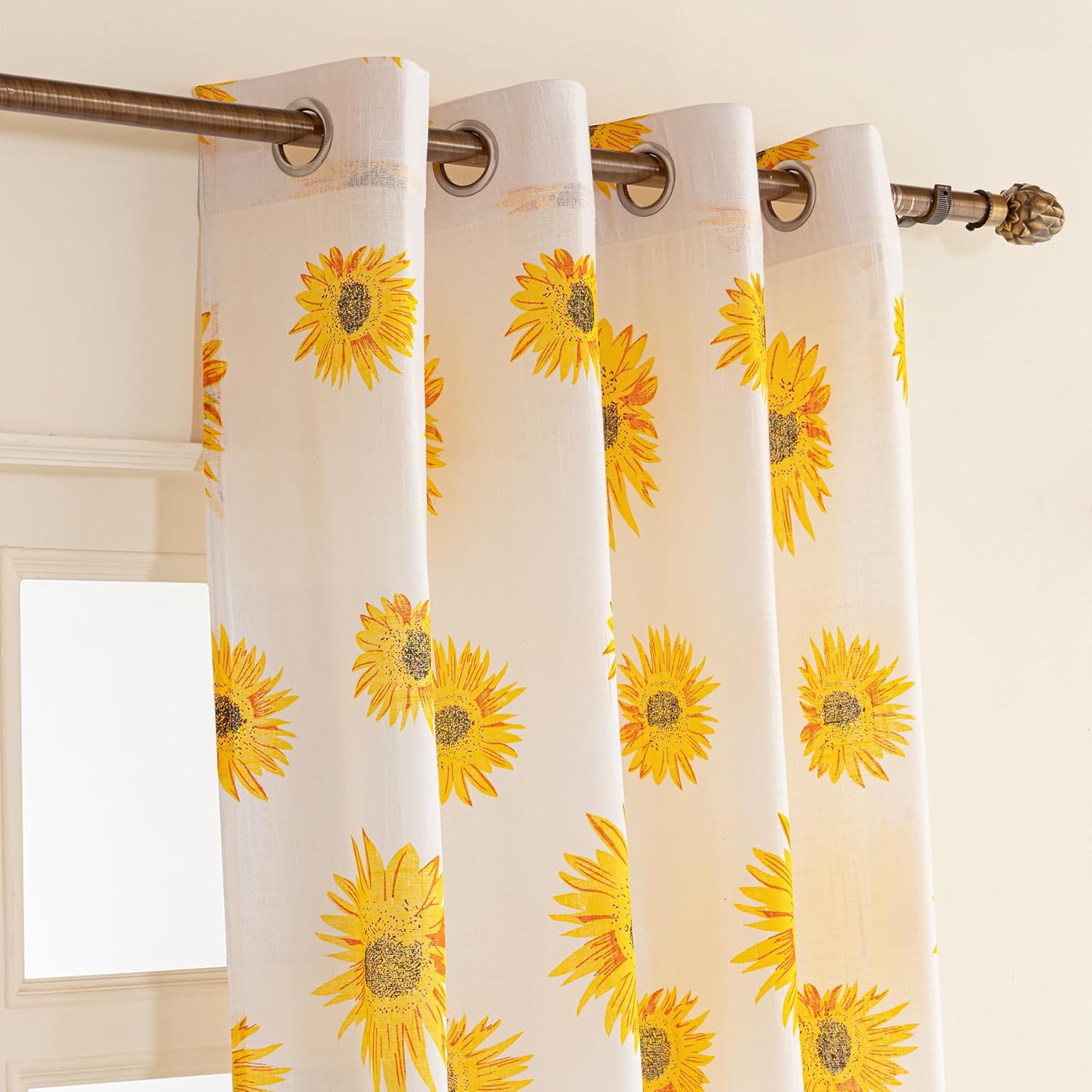 8 reviews for Homemonde Window 5 Feet Curtains Set Of 2 – Cotton Sheer Linen Printed Curtain For Living Room Decoration, White Sun Flower Drapes, 60 Inches – Grommet