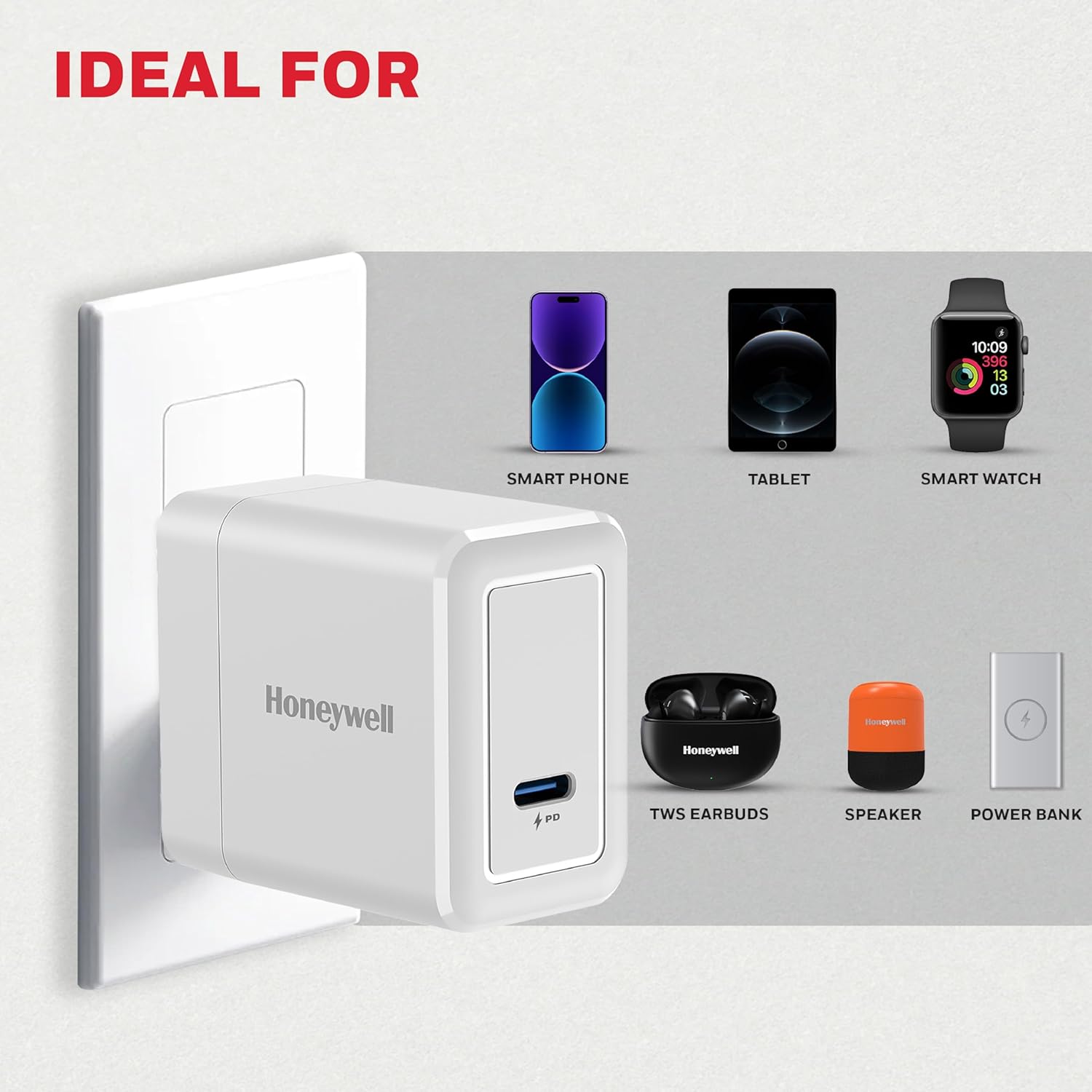 Honeywell Zest Charger PD20W, Type C Ultra-Fast Wall Charger with PPS Support, BIS Certified, Compatible with iPhone, iPad, Samsung, Oneplus, Smartphones, Tablets, TWS, Bluetooth Speaker