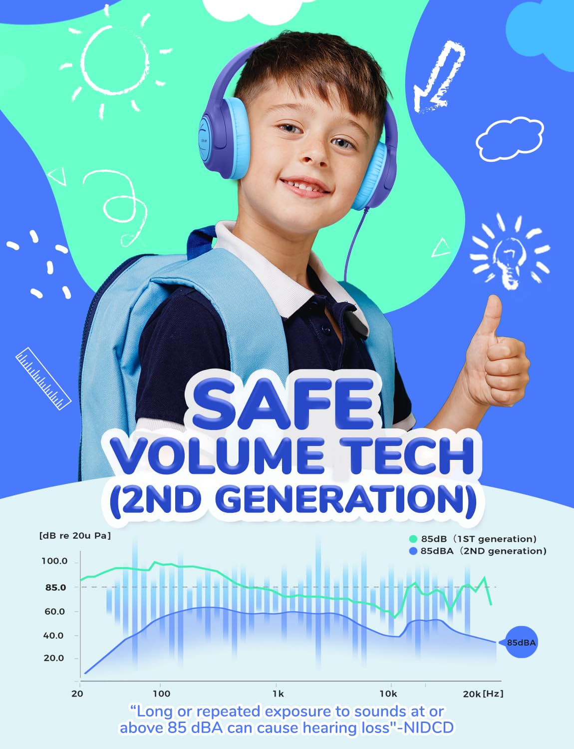 iClever Kids Headphones with Cord, 85dBA Safe Volume Wired Headphones for Kids, Stereo Sound Foldable Adjustable, 3.5mm Jack, Over Ear Kids Headphones for School/Boys/Girls/iPad/Tablet/Travel