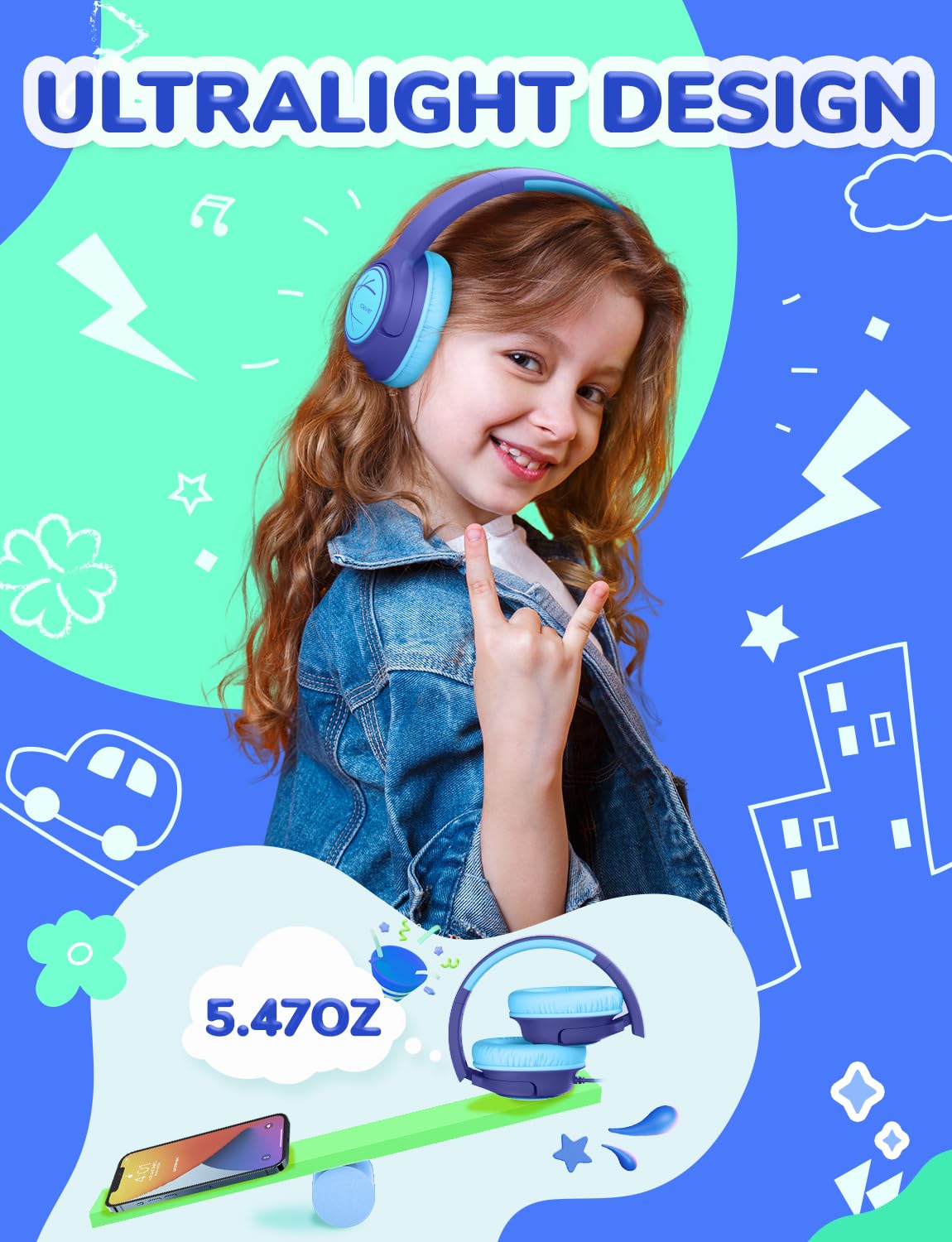 5 reviews for iClever HS26 Kids Headphones Cord, 85dBA Safe Volume Wired Headphones, Stereo Sound Foldable Adjustable, 3.5mm Jack, Over Ear Kids Headphone for School/Boys/Girls/iPad (Blue&Pink)