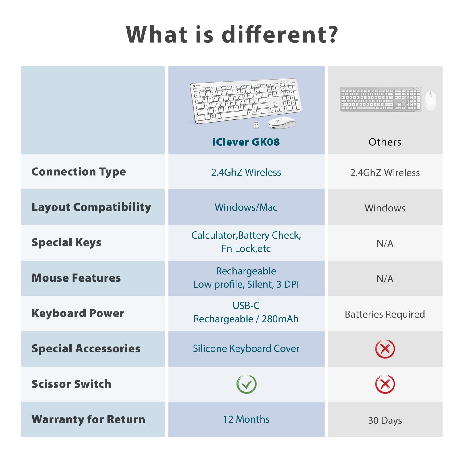 I used the iClever GK08 wireless keyboard and mouse for 9 months and was very pleased with the product. It has a premium look and feel, which I found quite impressive. Unfortunately, after some time, a few keys stopped working. While this can happen with any electronic device, iClever truly values its customers. They provided detailed troubleshooting steps and tried to resolve the issue. When it couldn’t be fixed, they offered a full refund immediately after confirming the problem. I was really impressed by iClever’s support and follow-up.
