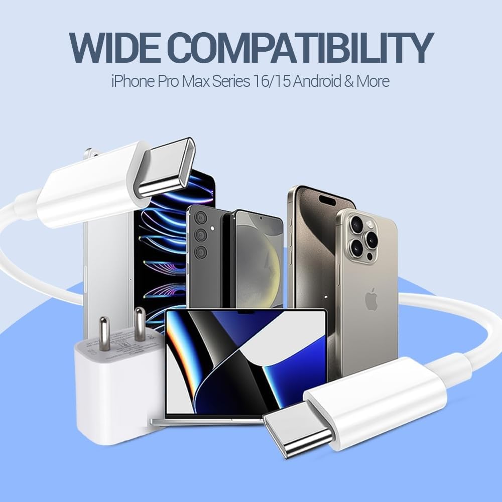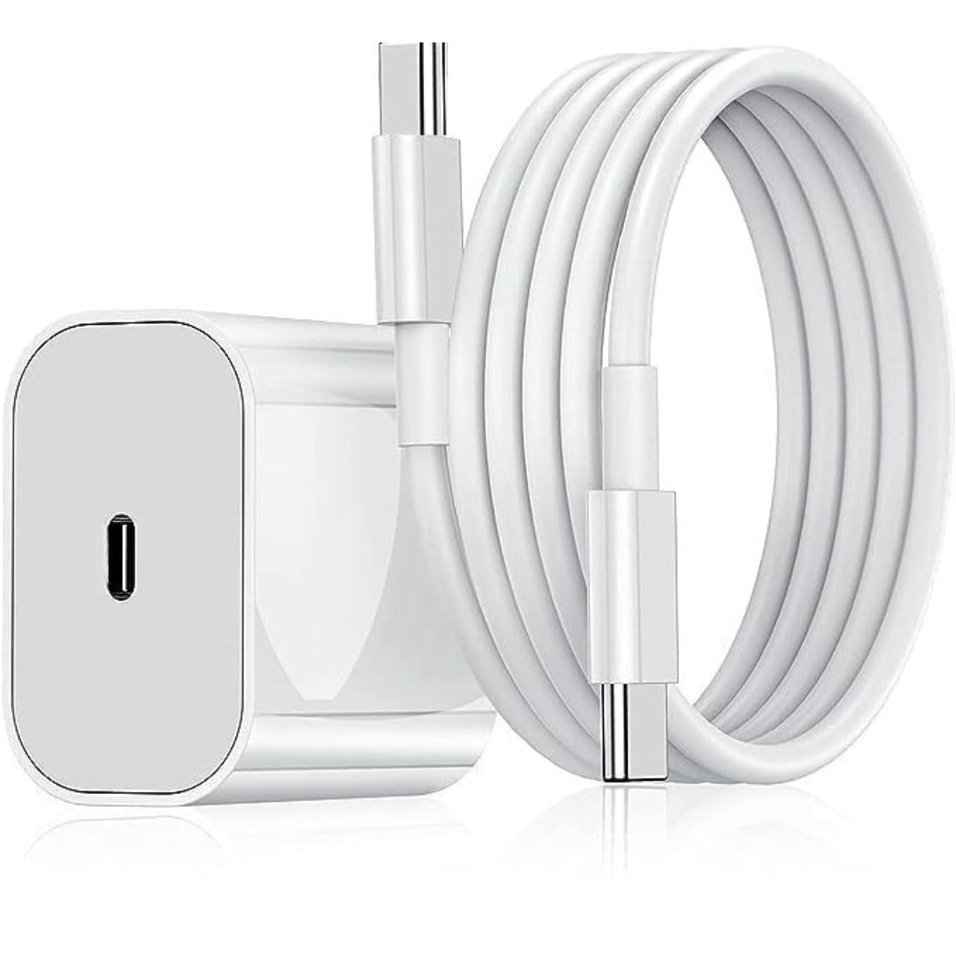 iPhone 20W PD Fast Charger Adapter with 1 Meter Type C to C Data Syn. Cable Compatible with iPhone 16/16 Plus/16 Pro/16 Pro Max, 15/15 Plus/15 Pro/15 Pro Max, Laptop & Other C Type Devices