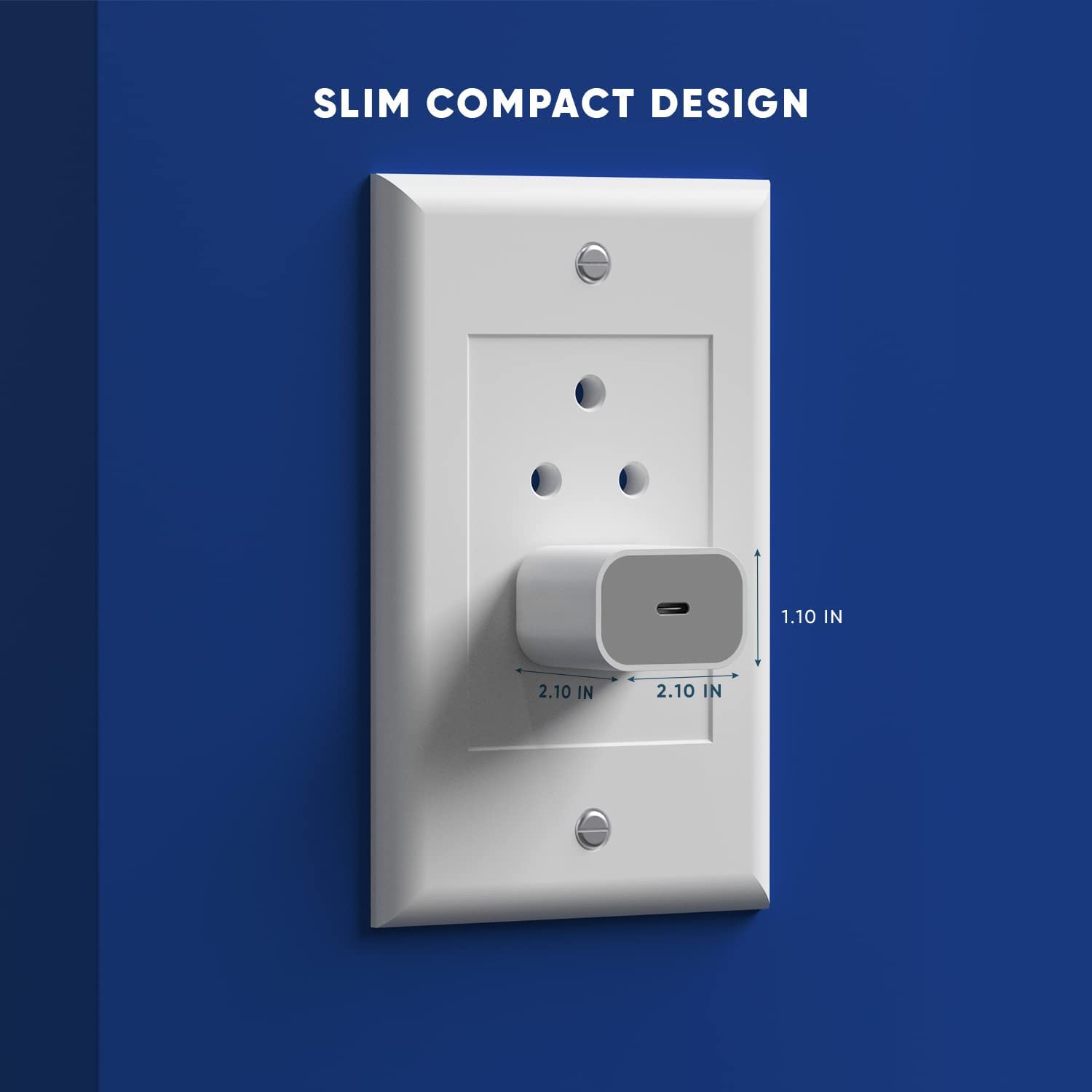 [PD ] The 20W type C charger fast charging uses Power Delivery and Quick Charge to offer fast efficient charging. You can pair it with iPhone 17,16,15,14,13,12,11, X, etc. to take advantage of the fast-charging feature, charging up to 50% in around 30 minutes. PD Quick-Charge USB C port provides Max 20W output power. Great for Android and iOS devices.