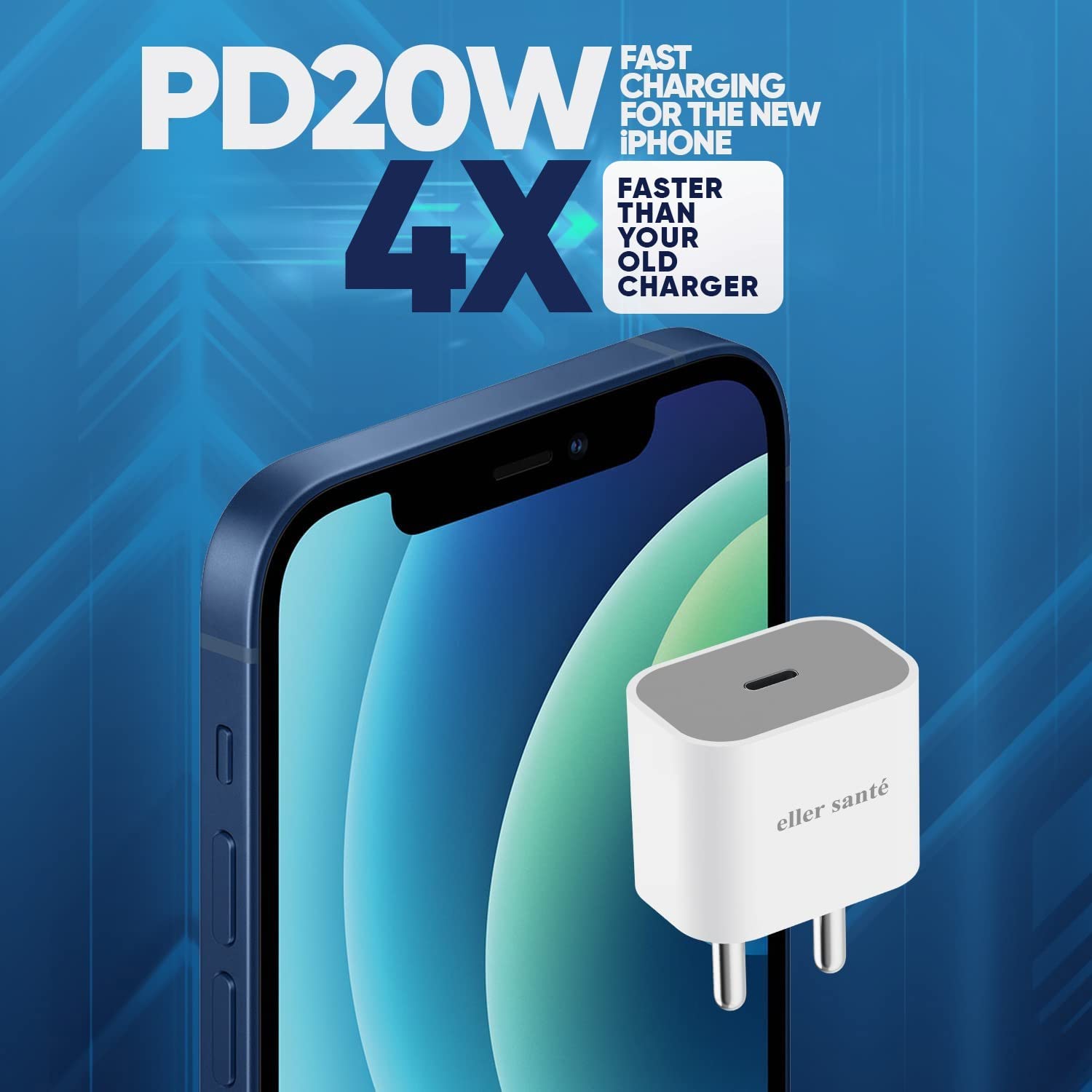 eller sante 20W Fast Charger Adapter: Fast Charger equipped with 20W PD 3.0 USB Type C power delivery wall plug, PD 3.0 Quick-Charge USB C port provides Max 20W output power, charge your device up to 3x.