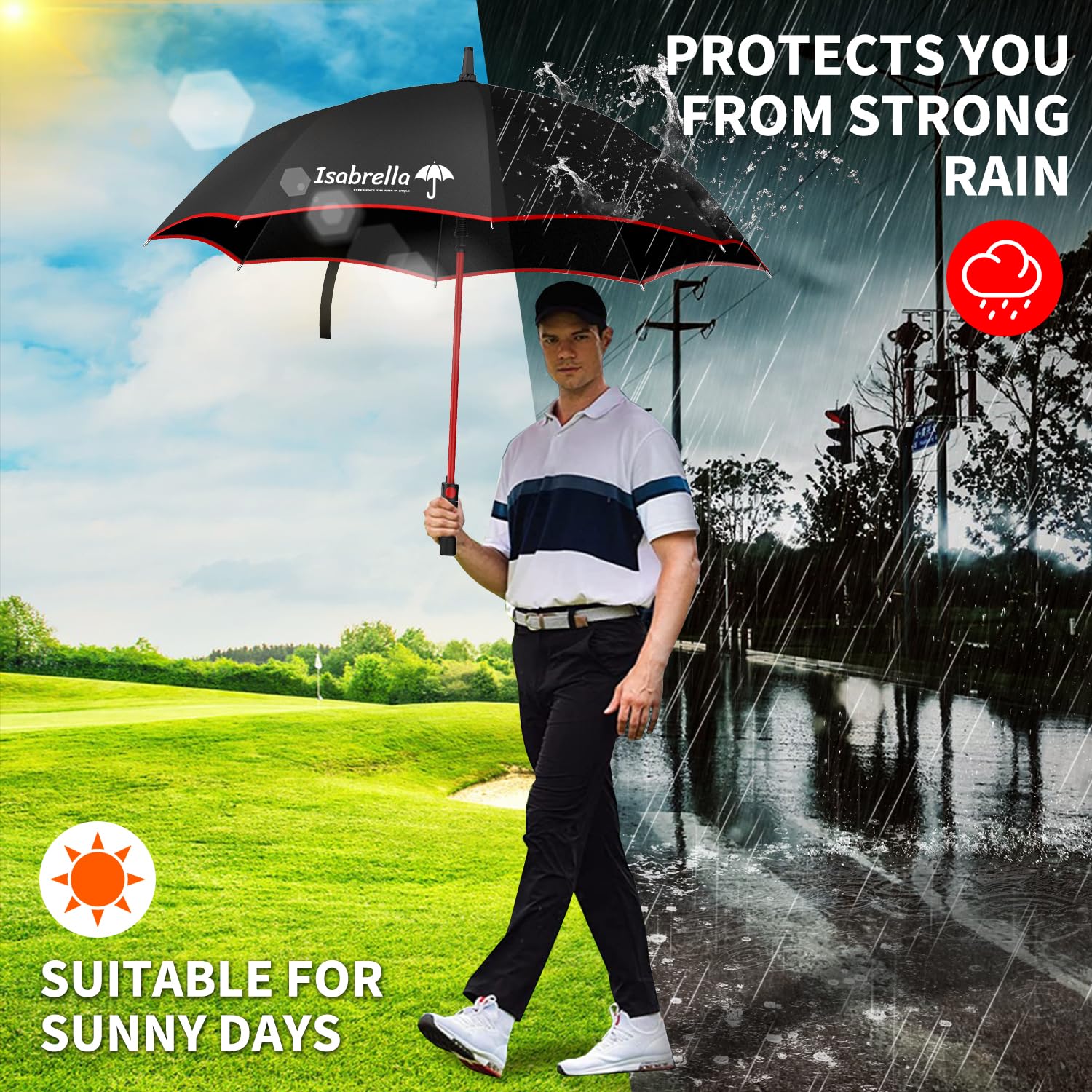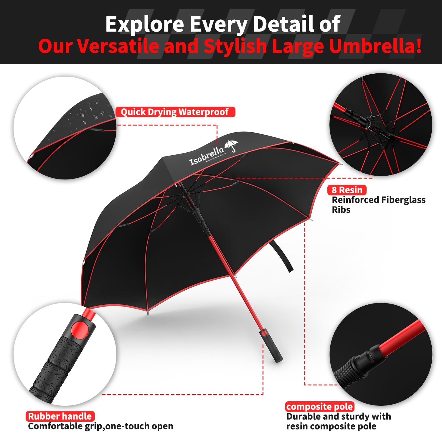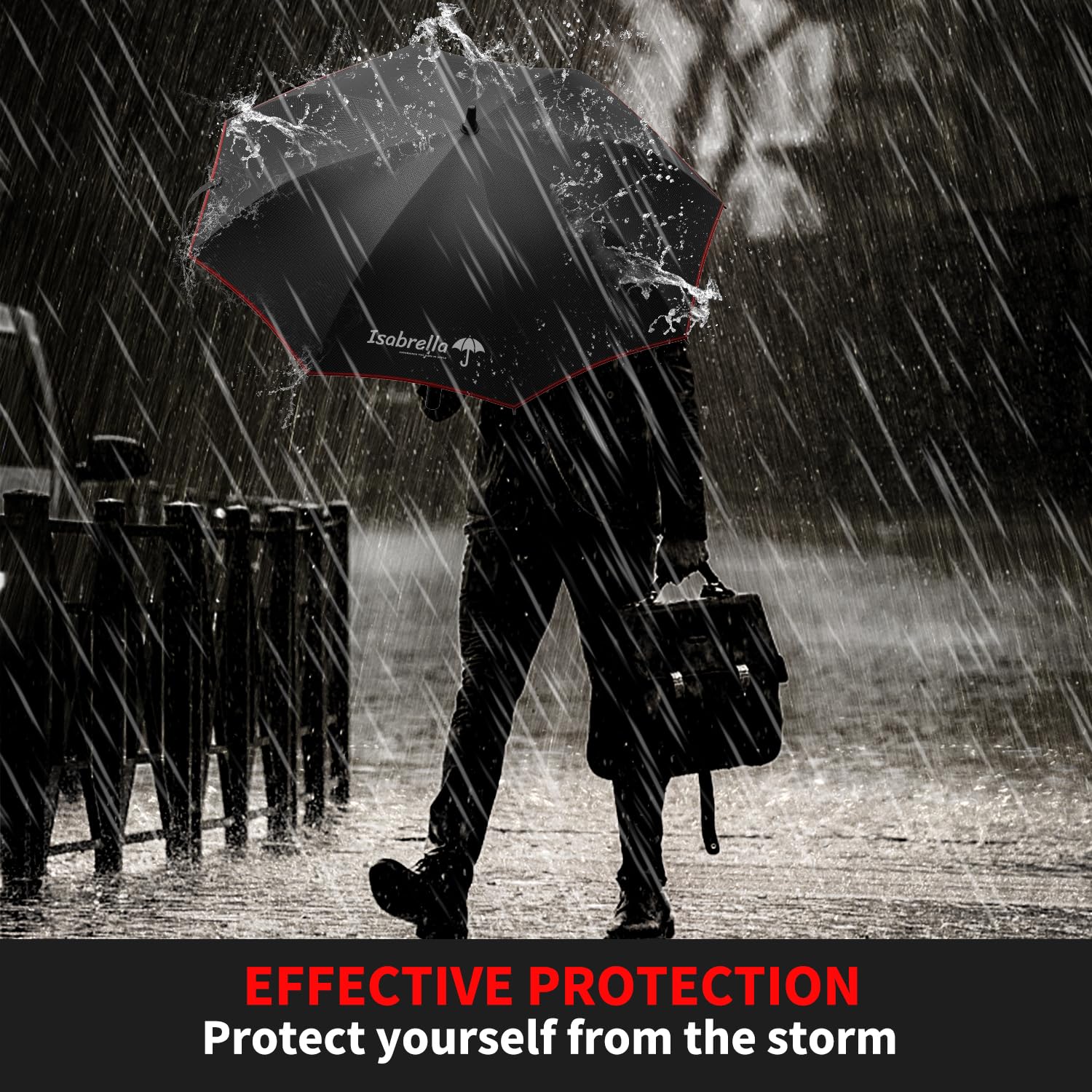 I recently purchased the ISABRELLA 54-Inch Umbrella, and overall, I’m quite pleased with the product. It’s big, sturdy, and perfect for staying dry in heavy rain.Pros:Large Coverage: The 54-inch size is fantastic! It’s big enough to easily cover me and my bag, and even someone walking next to me. Perfect for when you’re caught in a downpour.Automatic Open Feature: The one-click automatic open is super convenient. With just a push of a button, the umbrella pops open instantly, which is great when you’re trying to juggle things or step out of a car quickly.Durable Build: The umbrella feels strong and sturdy, especially for its size. The frame seems durable enough to withstand wind without flipping inside out, which is always a concern with larger umbrellas.Elegant Look: The design is sleek and looks professional, which makes it a great choice for men who need something functional yet stylish.Cons:Not Fully Windproof: While the umbrella holds up well in moderate wind, it can struggle a bit in really strong gusts. It’s not a dealbreaker, but it’s something to keep in mind if you live in a particularly windy area.Weight: Because of its size, it’s a bit heavier than smaller umbrellas. It’s not uncomfortable to carry, but if you’re looking for something super lightweight, this might not be ideal.In conclusion, the ISABRELLA Umbrella is a solid choice for anyone looking for a large, durable umbrella with easy one-click operation. It’s reliable for heavy rain and great for everyday use, though a bit heavy and less effective in strong wind. Definitely worth it for the price!