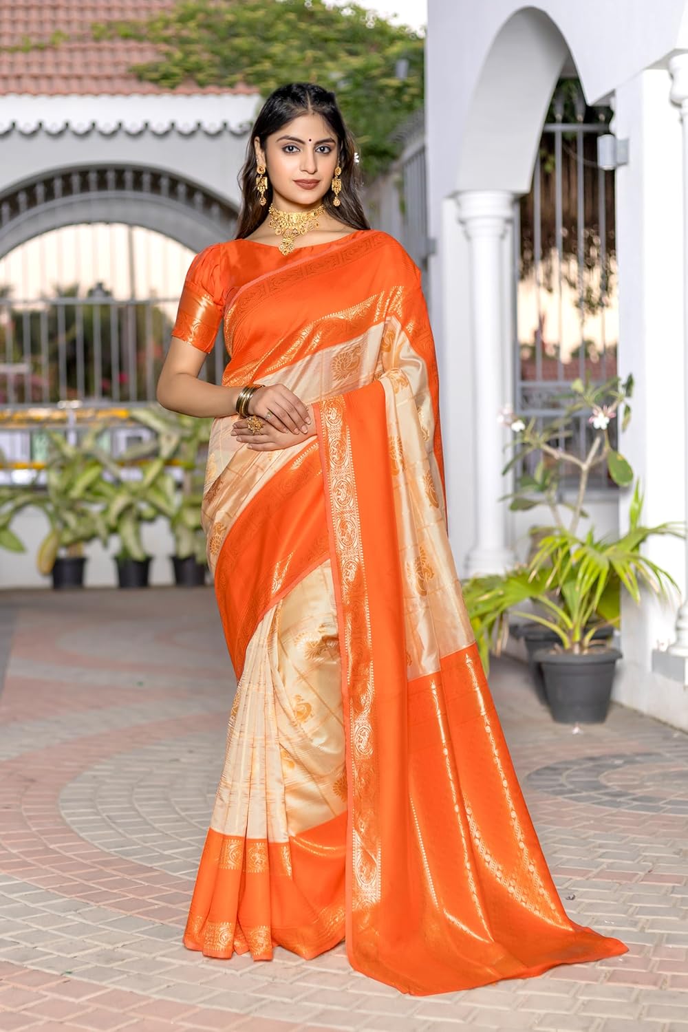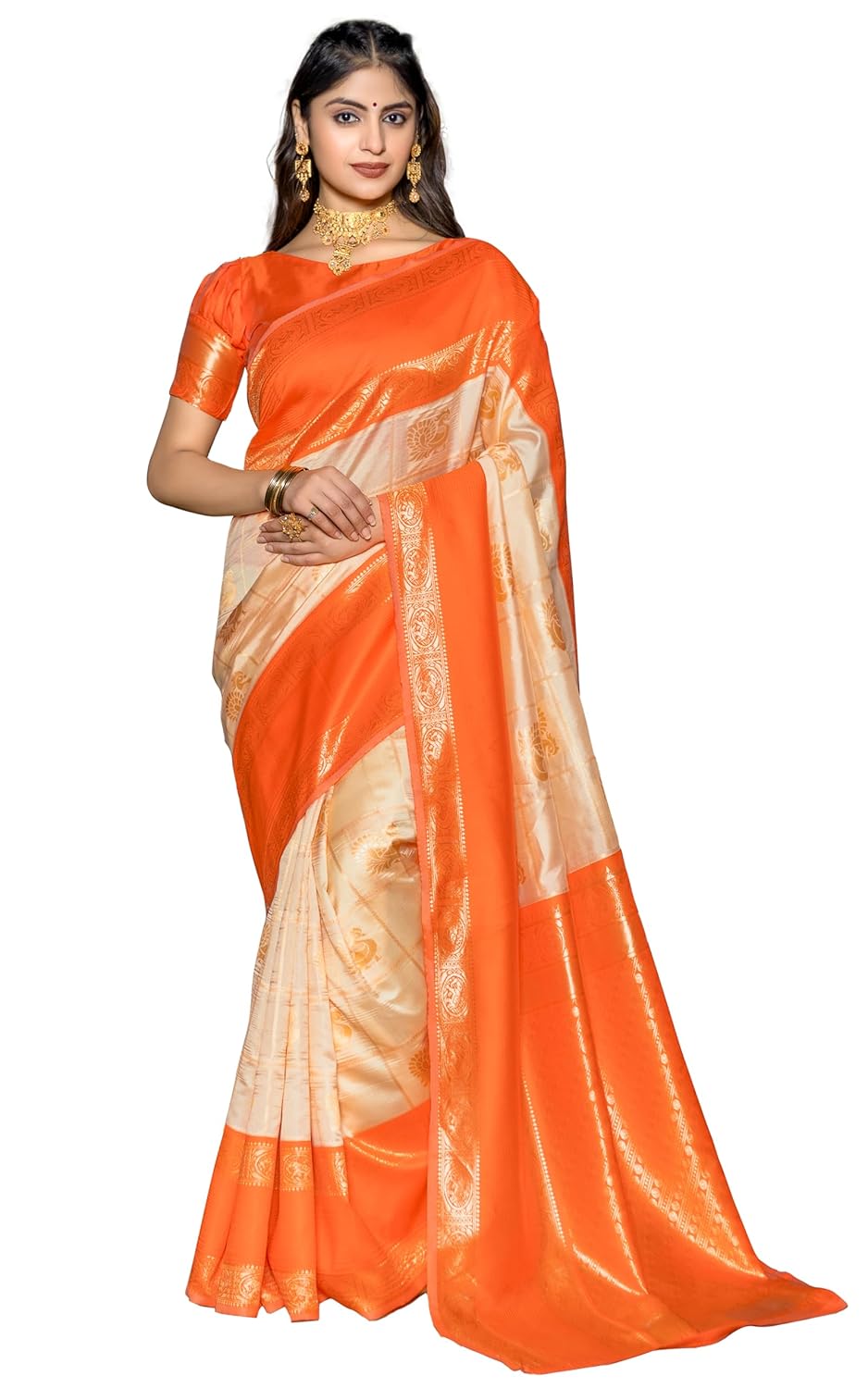 Jaanvi fashion Women’s Kanjivaram Silk Saree With Blouse Piece