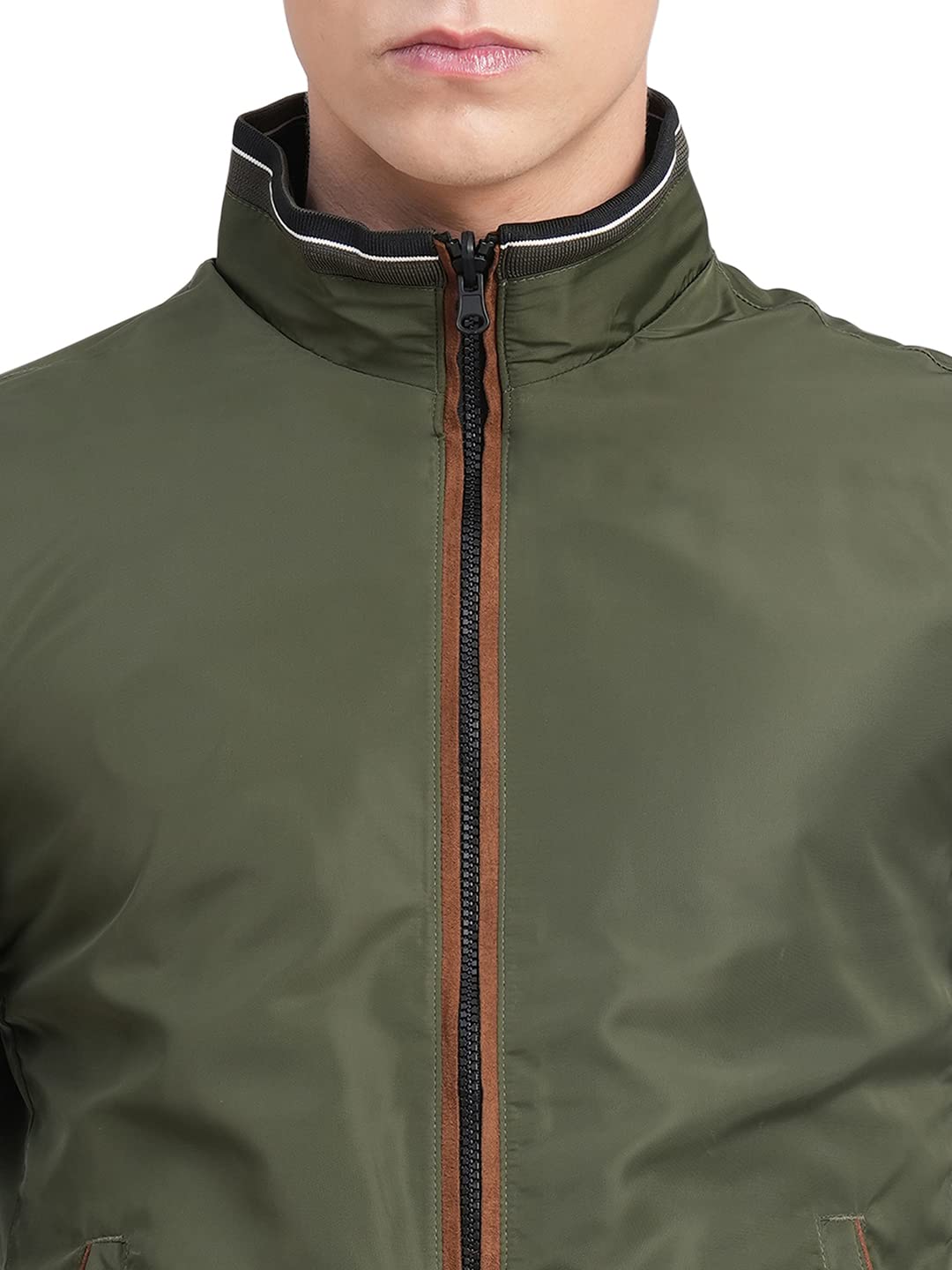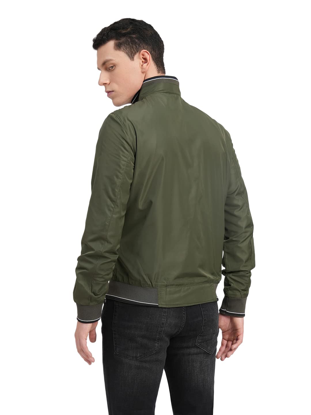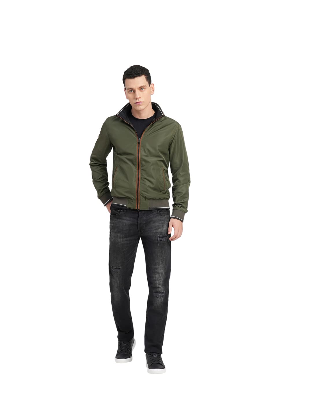 Jack & Jones Men Solid 100% Polyester Regular Fit Green Jacket