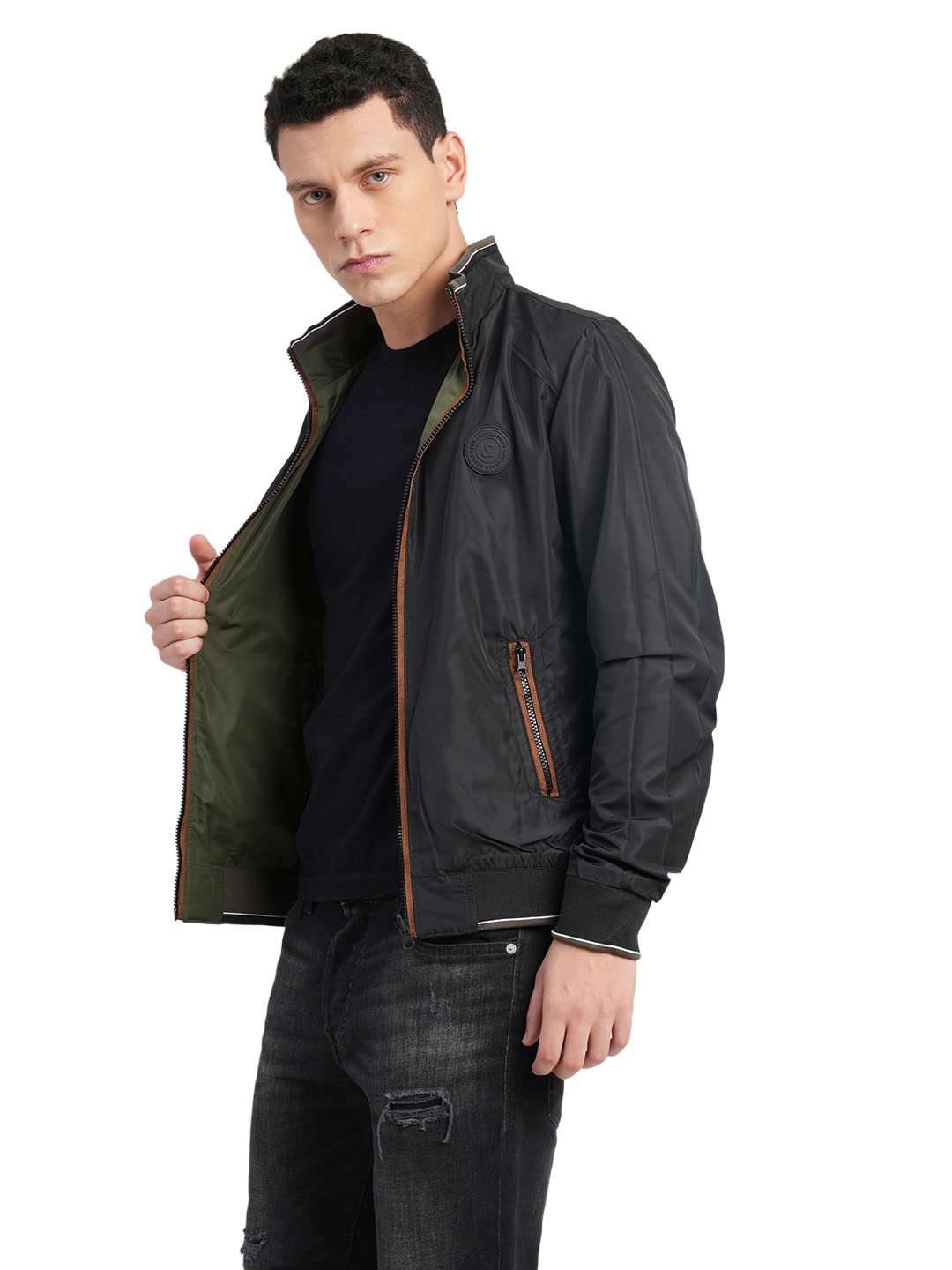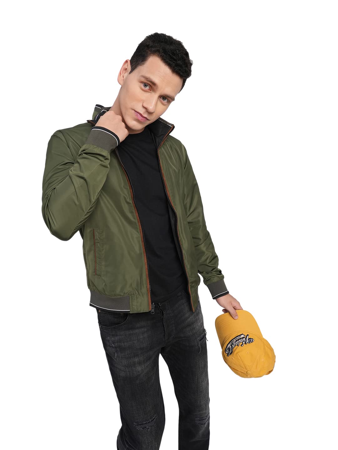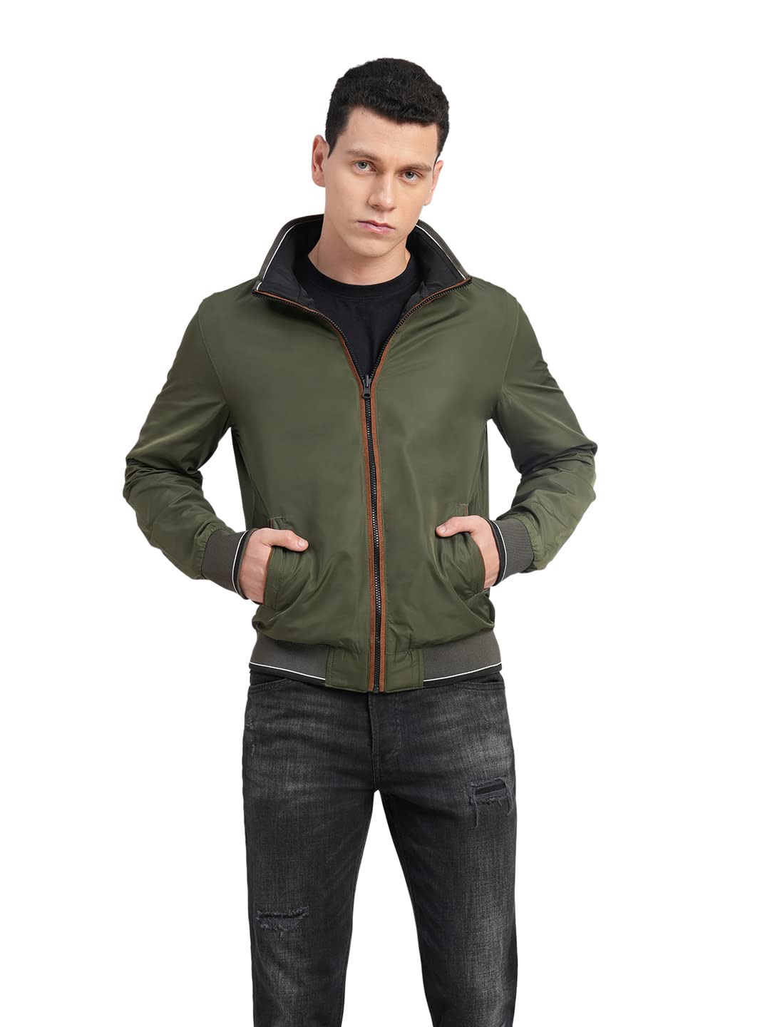Jack & Jones Men Solid 100% Polyester Regular Fit Green Jacket