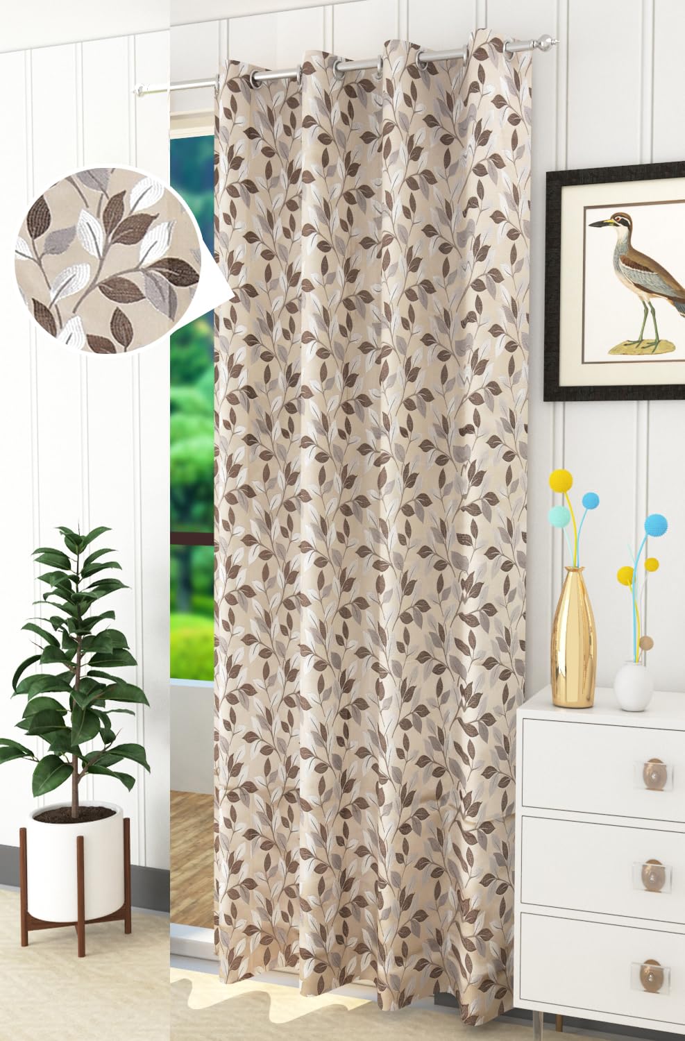8 reviews for Jacquard Window Curtain 5 Feet Long, Room Darkening Floral Design | Curtains for Living Room Bedroom, Rust-Free Eyelet (5 Feet Long – 1 Pc, Ptti Coffee)