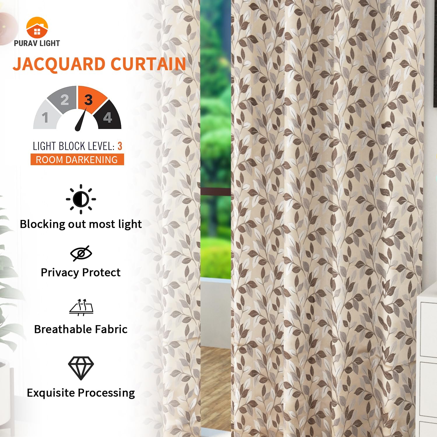 Premium Jacquard Material: The Soft and luxurious Jacquard curtains are made of high-quality polyester fabric. Which makes it wrinkle-free and durable.