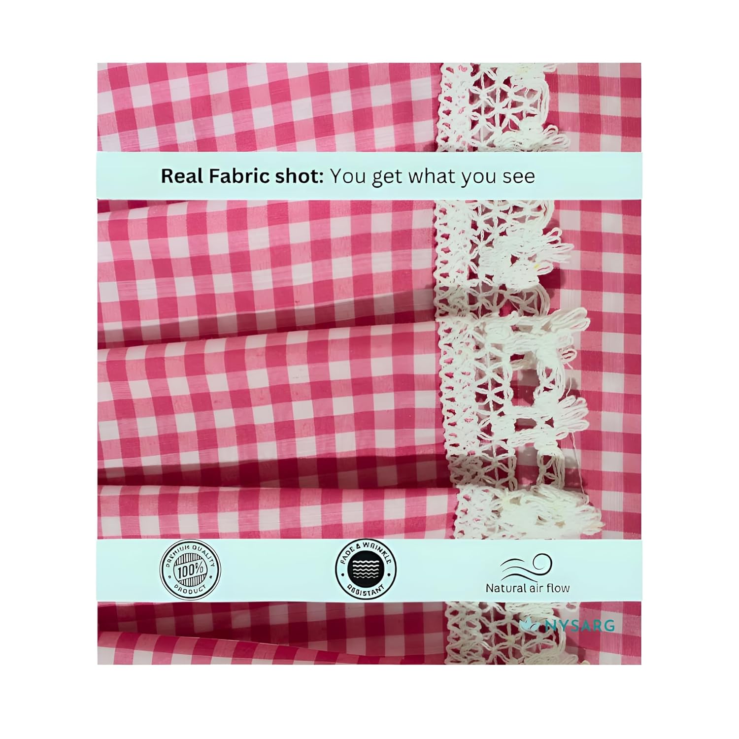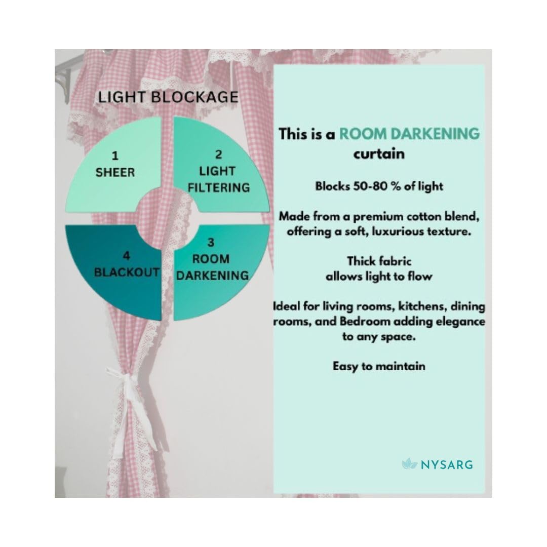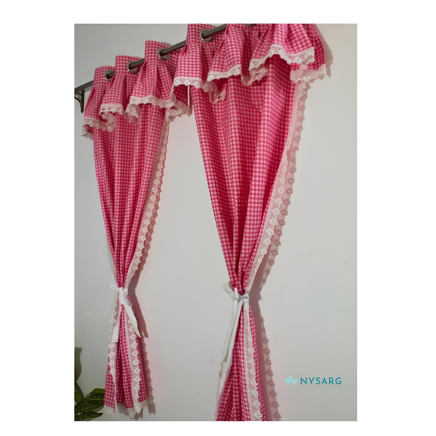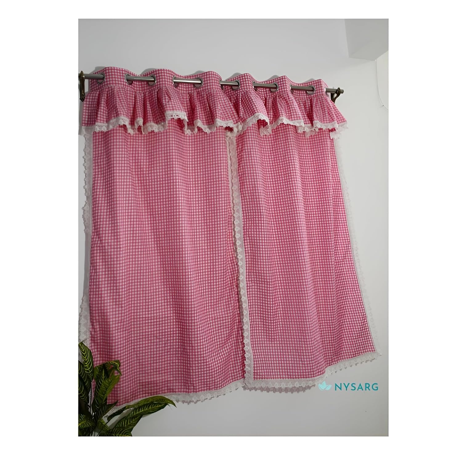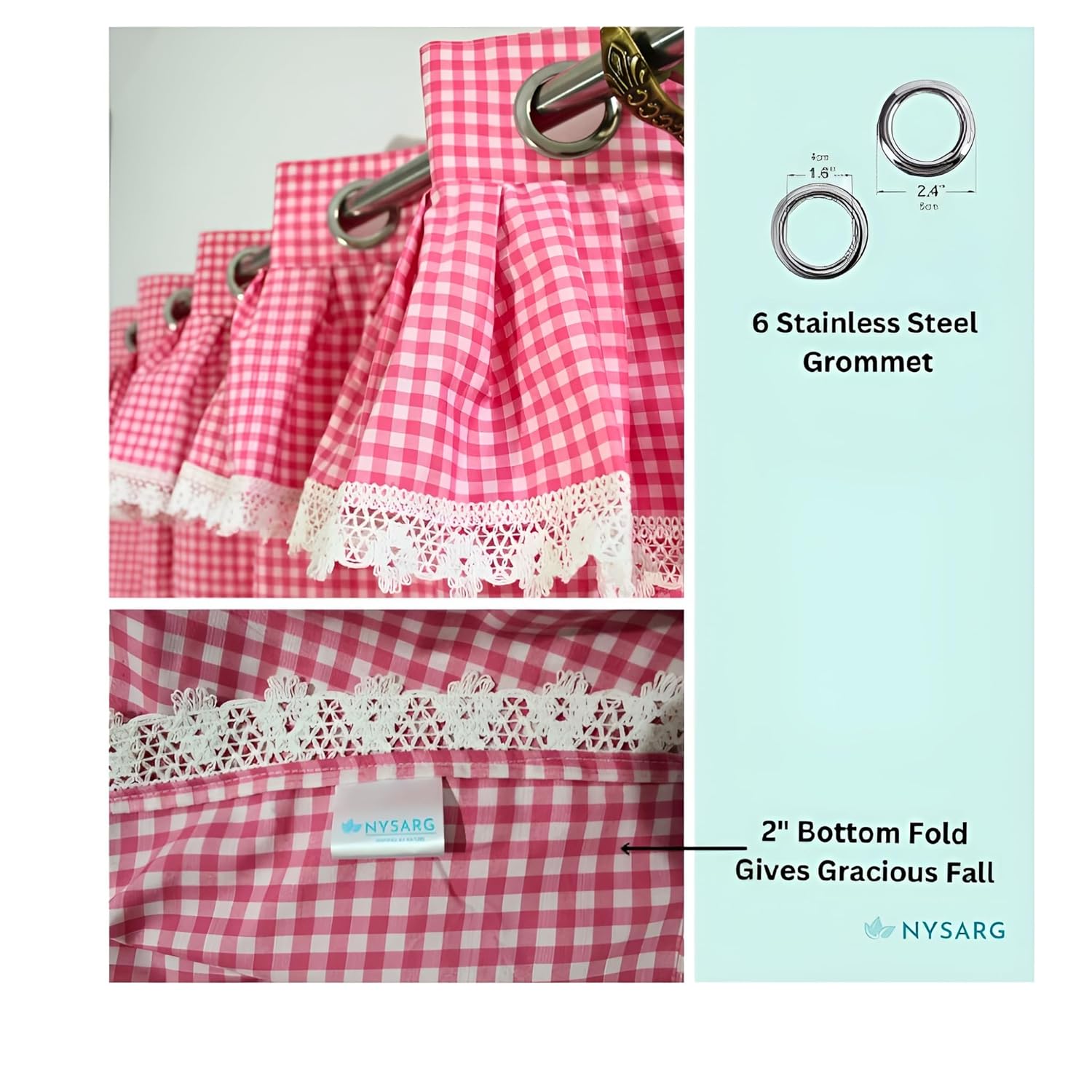 2 reviews for Korean Style Gingham Checked Print Curtain for Window, Cotton Blend with Lace and Bow, Set of 2, 70-80% Room Darkening Curtain with Eyelet (Window 5 feet, 60 * 32inch) (Pink)
