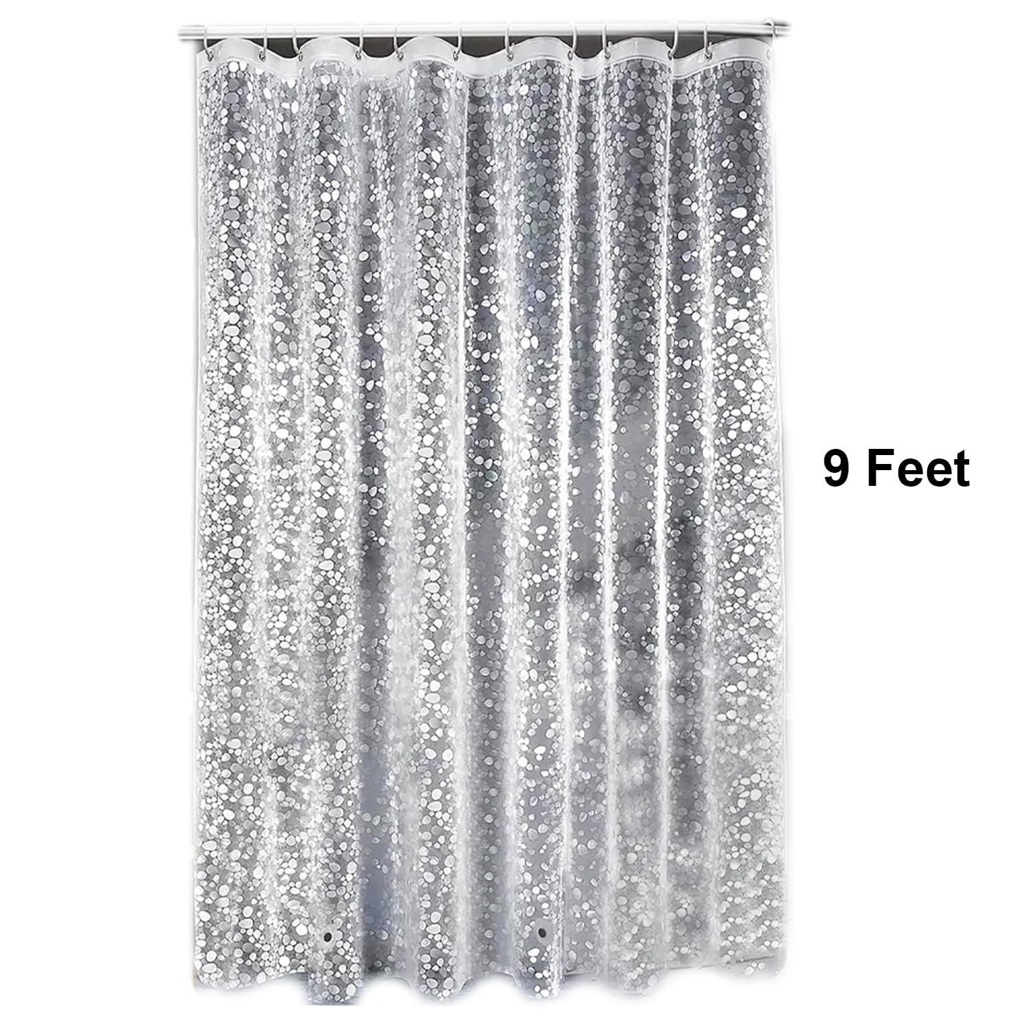 Kuber Industries AC Curtain | PVC Door Polka Dot Window Curtain | Curtains for Door | Curtain for Bathroom | Window Blackout Curtain | Shower Curtain with 8 Rings | 9 Feet | Stone Print | Transparent