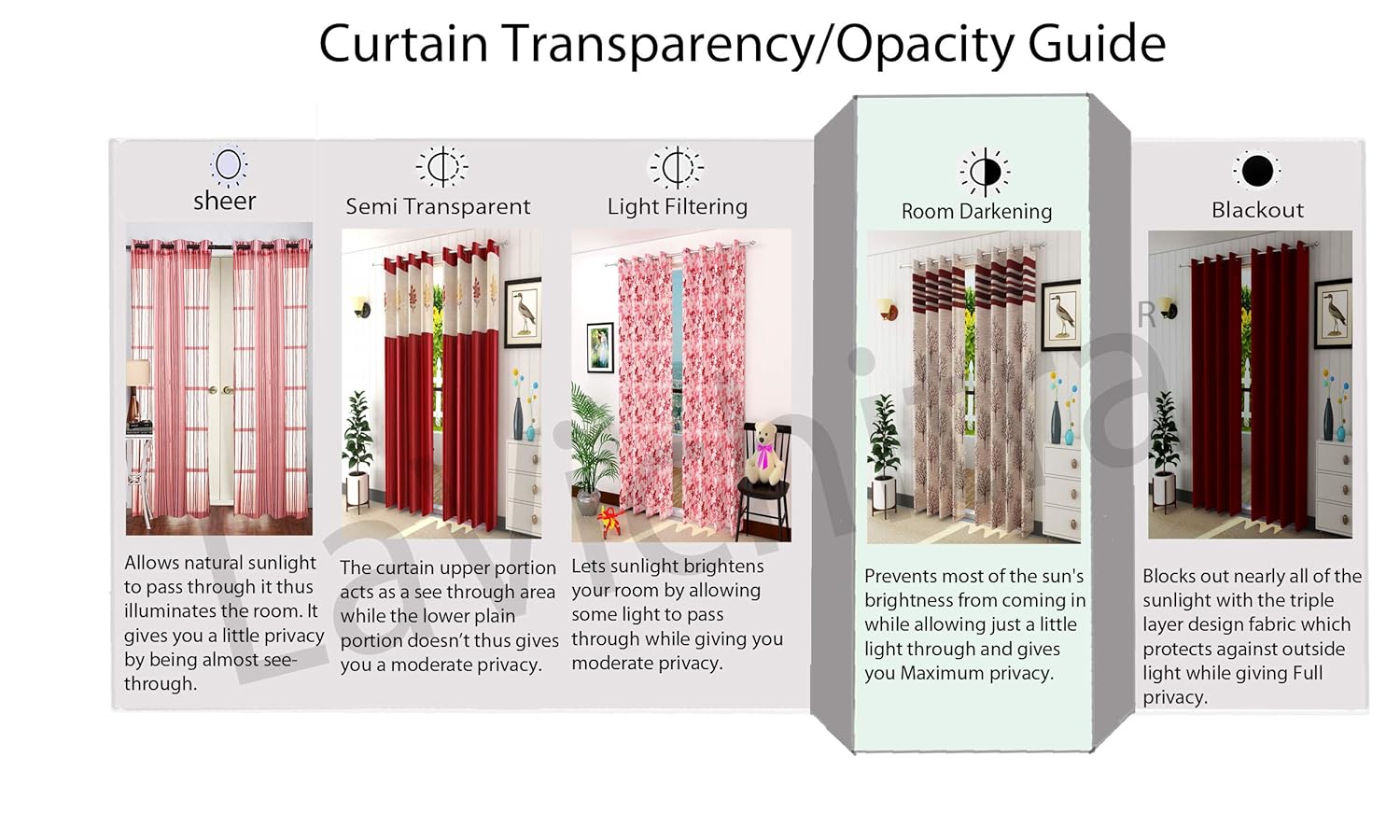 Good quality cloth, good design, 60 to 70% blocking of light.