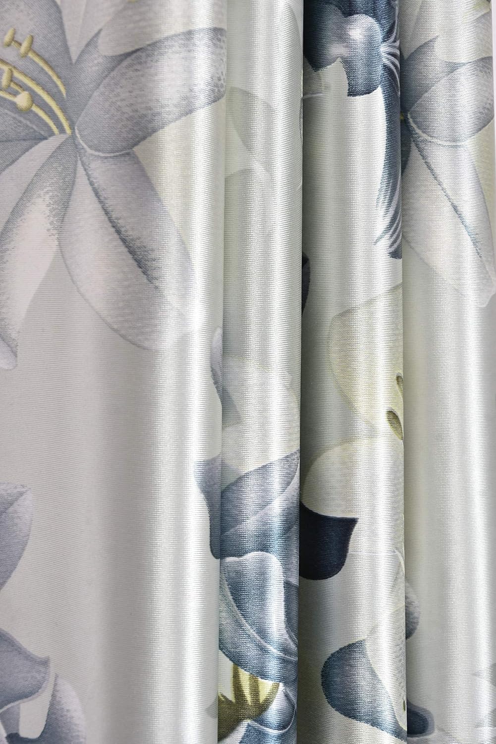 The curtains far exceeded my expectations. The material is thick with a nice gloss and finish, quite unlike the cheap polyester curtains that flood the market place. The floral print is vibrant and eye catching, exactly as shown in the pictures. As the curtains touched the floor I got them folded by 6″ and stitched, so that they would not get dirty. I bought the pair for about RS 700 on sale and am delighted with the purchase.