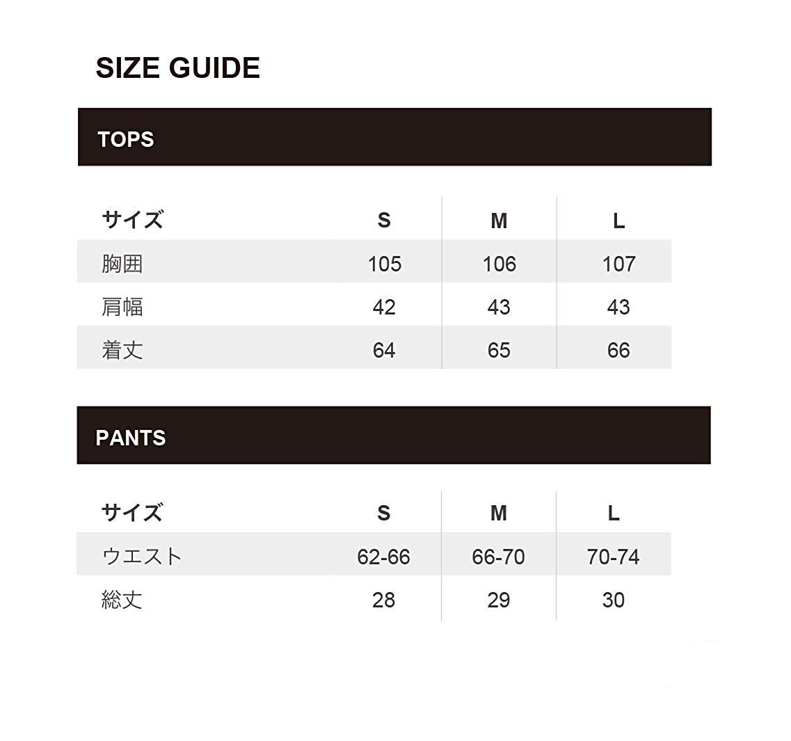 Size L: Bust: 42.1 inches (107 cm), Shoulder Width: 16.9 inches (43 cm), Length: 26.0 inches (66 cm), Sleeve Length: 8.3 inches (21 cm), Waist: 27.6 – 29.1 inches