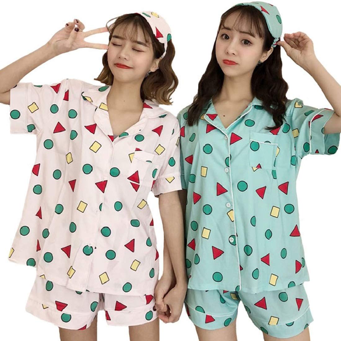 Lemon Tree Seven Women’s Pajamas, Short Sleeve, Summer, Open Front, Top and Bottom Set, Room Wear, Cute, Eye Mask Included, Loungewear, Pastel Colors