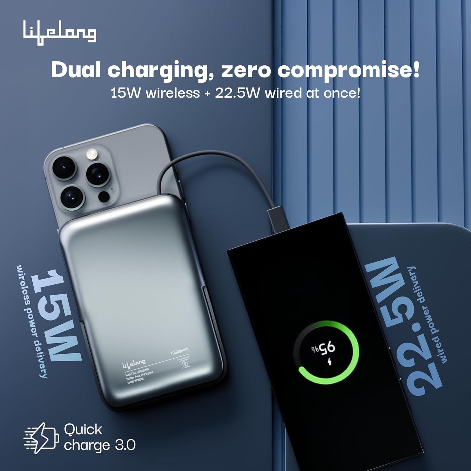 This Magsafe Wireless Fast Charging Power Bank has been a super useful addition to my daily routine, especially with its strong magnetic grip that keeps my phone securely in place while charging on the go. The 22.5W QC 3.0 output delivers fast and reliable power, and the extra magnetic ring makes it easy to use even with non-MagSafe cases or other Qi-enabled devices. Whether I’m traveling, working in the office, or just moving around the house, this power bank keeps my phone topped up without any hassle of cables. Its compact and strong design, powerful battery backup, and smooth wireless experience make it a very handy gadget to carry every day.