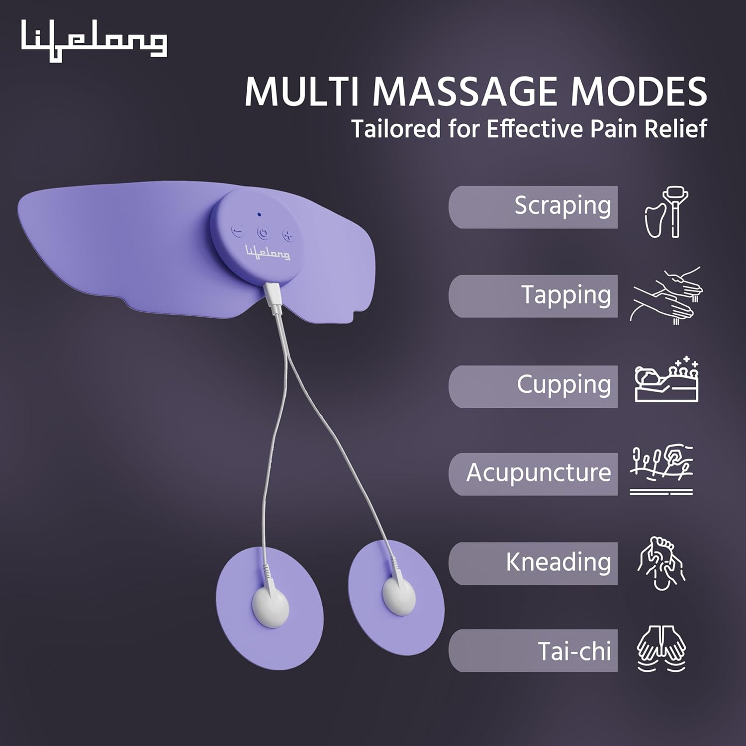 Multi Massage Modes: Lifelong Period Pain Relief device offers 8 unique massage modes—including Scraping, Tapping, Cupping, Acupuncture, Kneading, and Tai Chi—each tailored for effective pain relief.