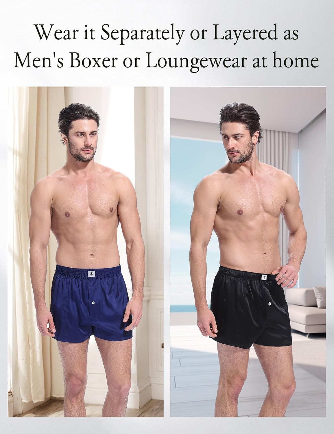 Free draping,is different from traditional model of boxers for men. Perfectly fits the body and offer the comfort. Mother of Pearl button is used for the front boxer which is chic and convenient. Panty length is designed to the thigh, effectively protect the thigh muscle. When wearing suits, there will be no signs and will avoid awkward triangle shape.