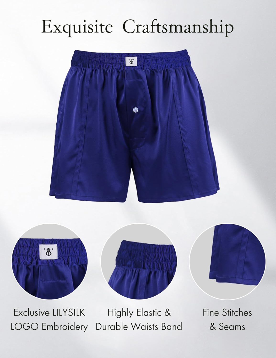 LilySilk Silk Boxers Mens Breathable Real Mulberry Underwear 6A Grade Royal Shorts Combo Pack, Silk Sleep Lounge Bottoms
