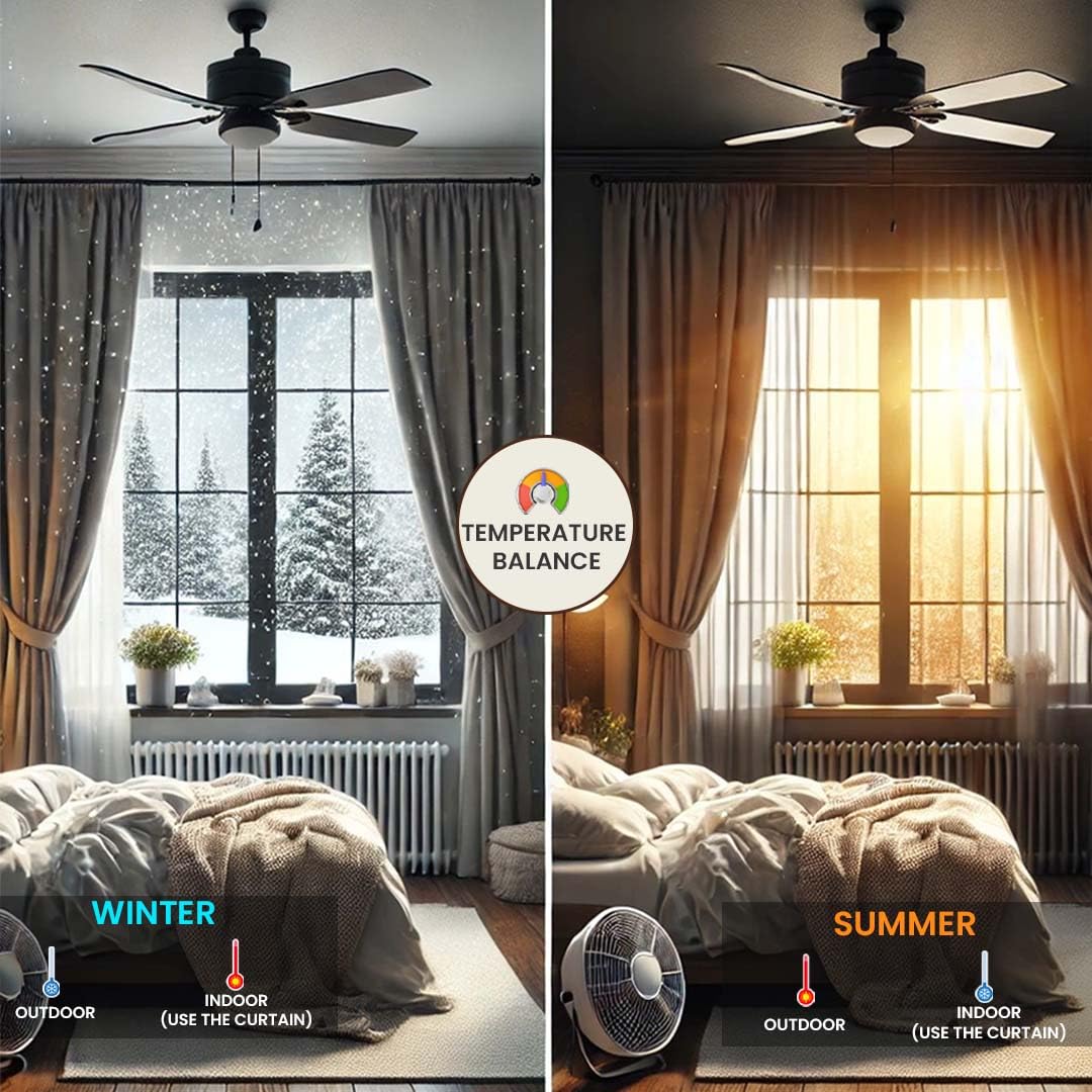 ?? Thermal Insulated & Noise Reducing: Keep your room cool in summer and warm in winter with our thermal-insulated blackout curtains. The dense fabric acts as a sound barrier, significantly reducing outside noise and creating a peaceful indoor environment. Save on energy bills while enjoying privacy and comfort all year round