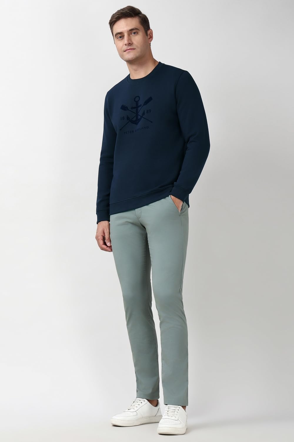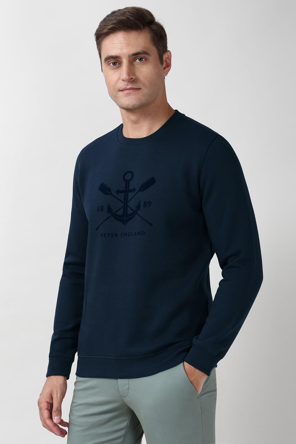 Beat the chills with this Navy Graphic Print sweatshirt from Peter England for a perfect look.