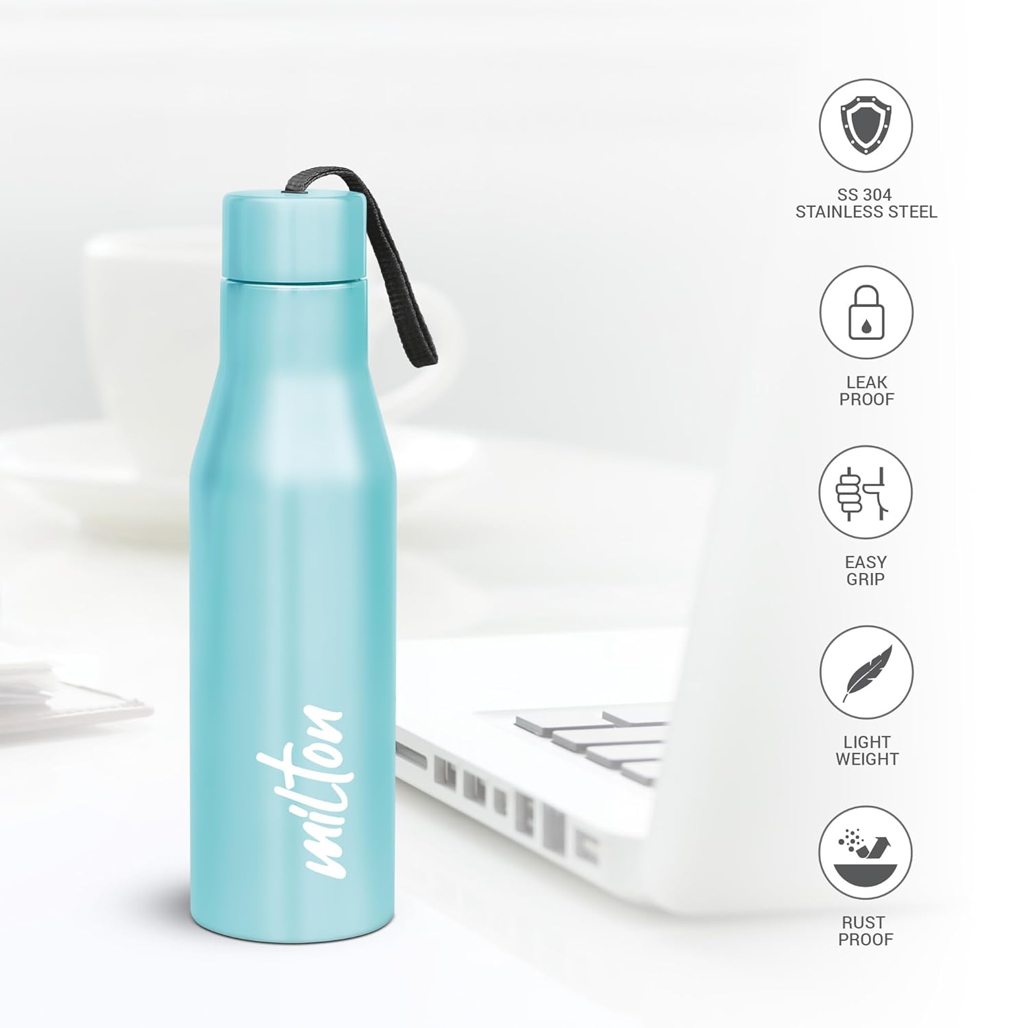 Be the first to review “MILTON: Super 1000 Stainless Steel Water Bottle 1 ltr, Single Walled, ISI Certified I Leak Proof Lid, Rust Proof I For School, Office, Gym I Sky Blue” Cancel reply