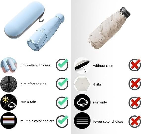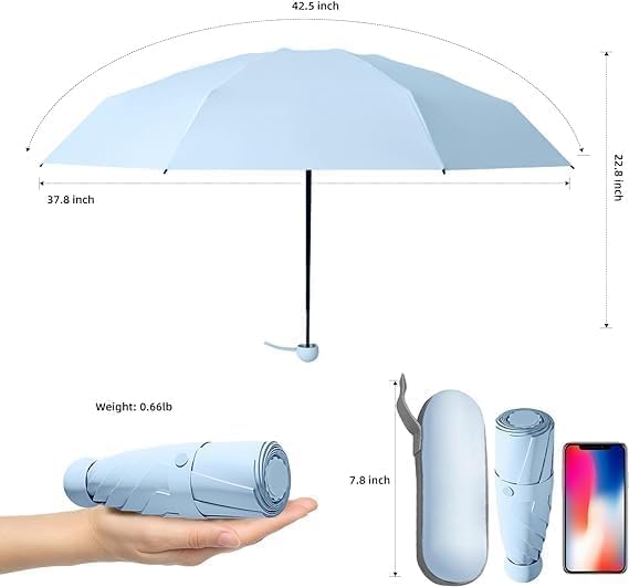 Mini Umbrella with Case for Men & Women (Manual Open) Compact Travelling Pocket Umbrella, Polyester & UV Protect Fabric for Summer/Anti-Slip Handle- Use in Rain & Summer