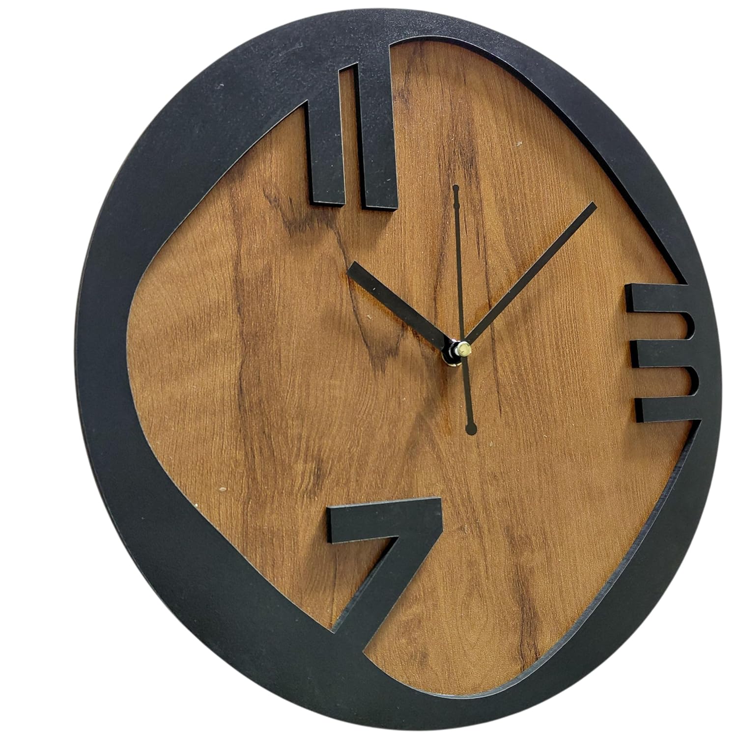 Modern Abstract Wooden Wall Clock with Black Bold Numbers – 12 Inch Ticking Designer Clock for Home & Office Decor 32cm x 32cm