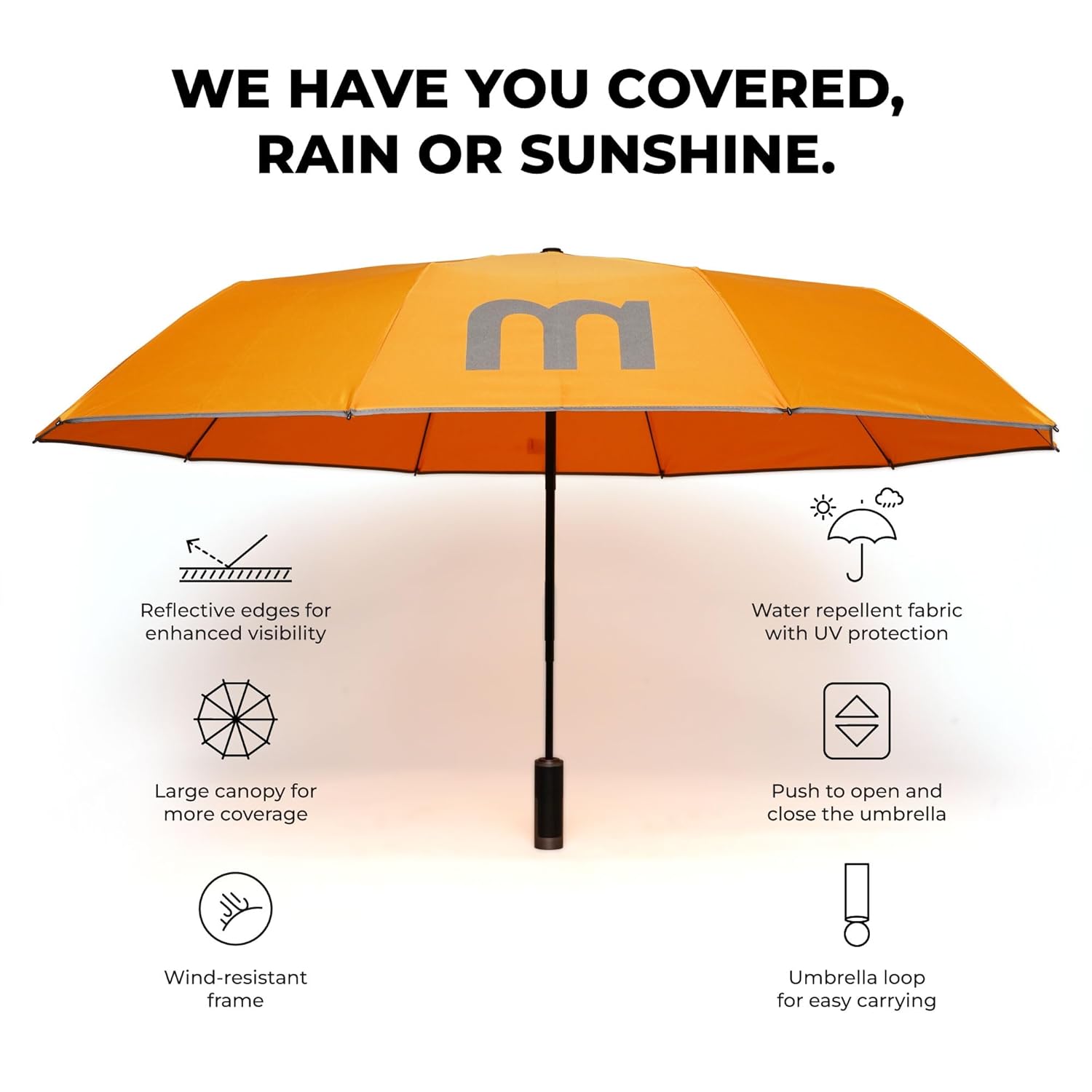 Meet the Em City Umbrella. It’s compact, collapsible and incredibly convenient to carry. We paired the portable design with a large canopy, large enough for a best friend or a +1 🙂 Designed to keep you all-weather ready, so you can throw out all your rain checks. For good.