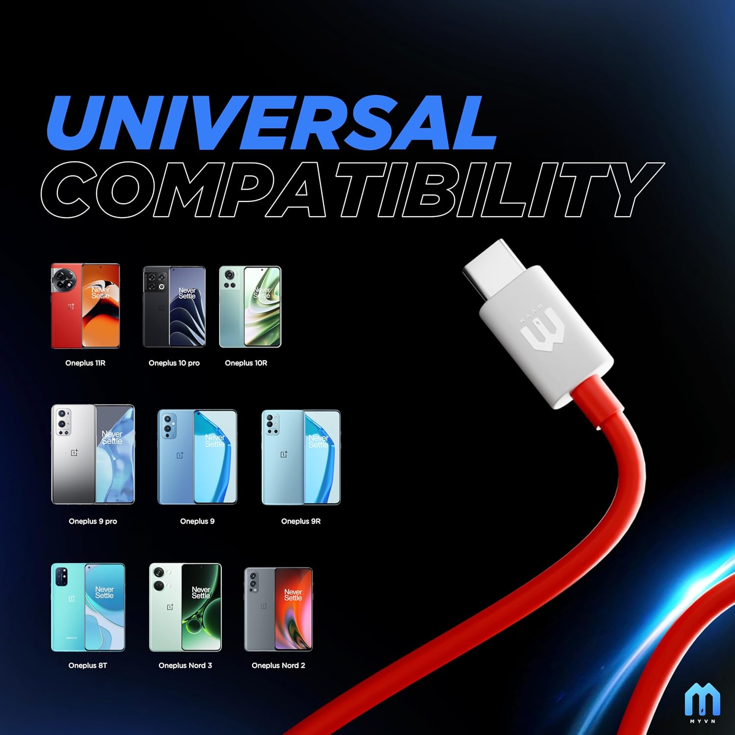 9 reviews for MYVN Charging Type C to Type C Cable Compatible For One Plus 11/11R/10/10pro/10r/8T/9/9pro/9r/nord 3/nord ce3/nord2 Fast Charging Cable 6.5A Warp Charge SuperVooc